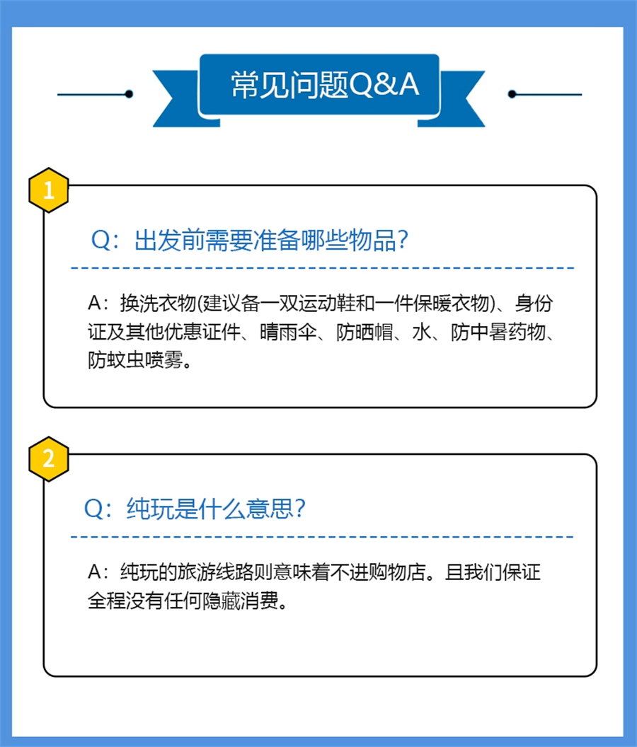 3、成团说明:如因参团人数未达到发团人数则取消当期活动,活动出行前提前通知并全额退款,积极为游客推荐类似路线或拼团。