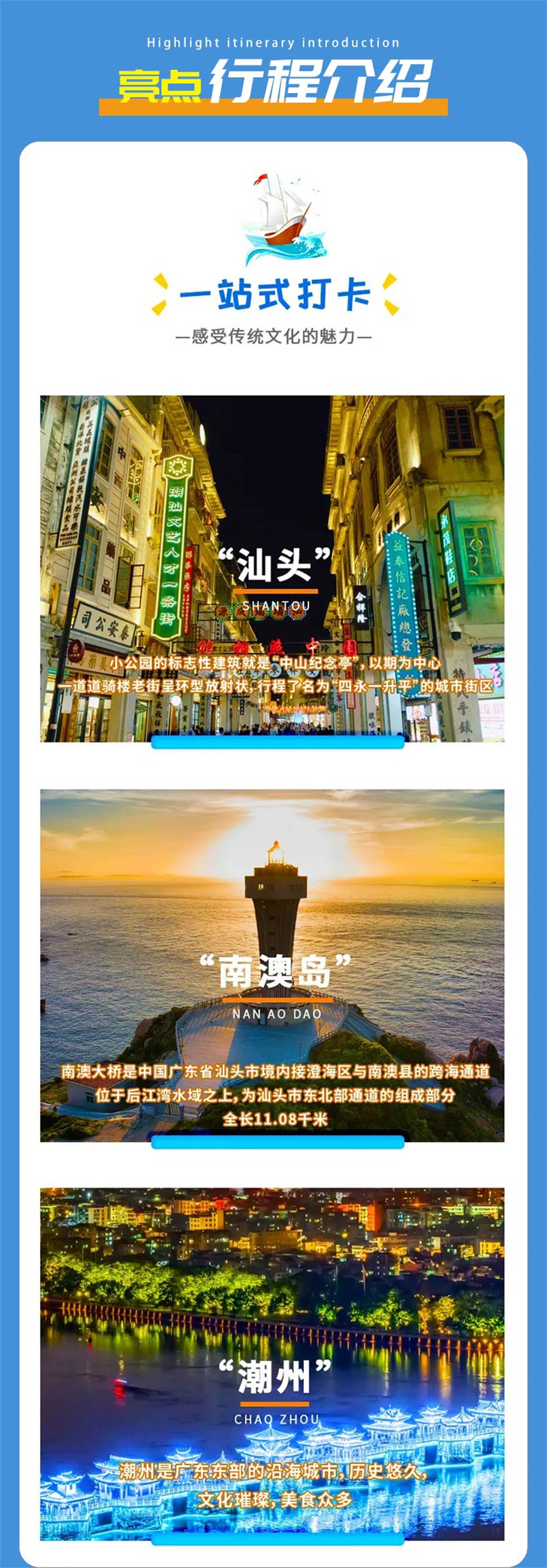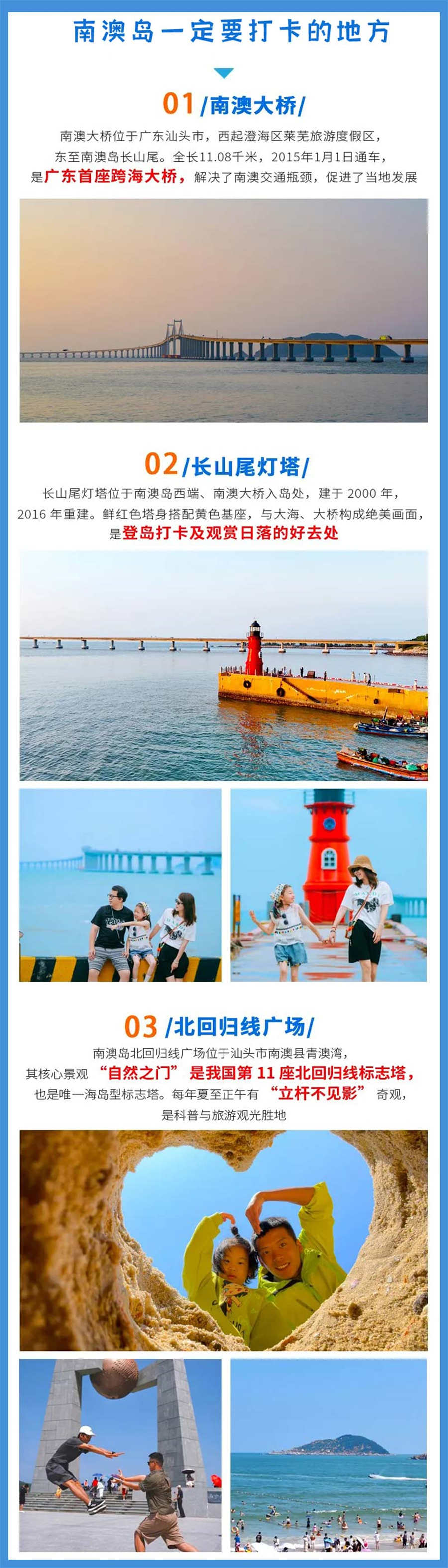 D6/2.20|潮汕半日自由行-云水谣-龙岩(宿龙岩)今天上午大家自由活动,您可以选择南澳岛(需提前自行订航班)/市区自由行。去南澳岛会从南澳大桥上岛,可欣赏大桥宛如长龙横跨海面的壮观景象。下桥后到启航广场,红色灯塔与碧海蓝天相映成趣。接着前往钱澳湾灯塔,白色塔身搭配绿色玻璃窗,充满小清新风格。再到云澳渔港,能看到密集停泊的船帆。午后游览宋井风景区,感受历史沧桑。最后抵达青澳湾,这里沙质洁白柔细,可漫步沙滩,欣赏美丽海景。如果不想去南澳岛的,也可以潮汕自由行半日。