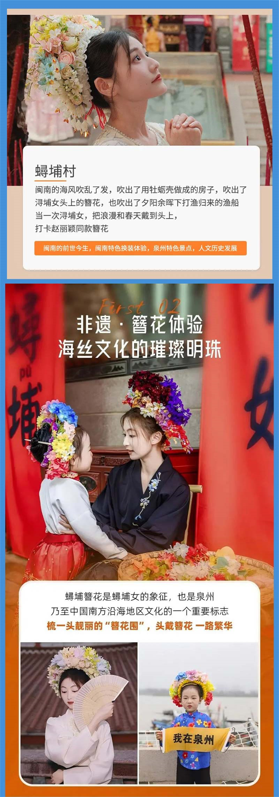 D4/2.18|泉州-浔埔村-簪花开元寺-厦门自由行(宿厦门)早餐后,我们游览浔埔村。【蟳埔村】,这是个小渔村,住着古代阿拉伯人后裔,这里的女性有着“戴簪花圈,插象牙筷”头饰的蟳浦女,她们与惠安女、湄州女一起并称福建三大渔女,还有别具特色的民居“蚵壳厝”。这里是海丝之路起始的港口,我们沿着街道走进古厝,一路上会看到三三两两或是劳作或是唠嗑的蟳蜅女;之后由网红阿姨帮忙梳妆,换上【蟳埔服饰】,拍摄阿拉伯后裔的别样风情;村内,蚵壳厝、古庙、老榕、码头等都是很好的拍照点。
