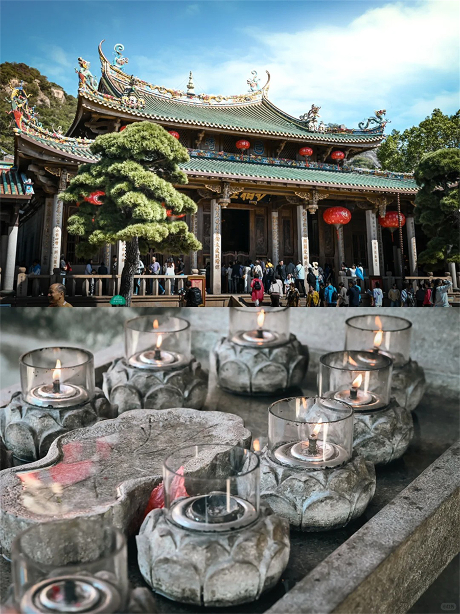 【洛伽寺】位于福建省泉州市石狮市,被誉为“海天佛国”,是一座建于唐代的佛教寺庙。寺庙依山傍海,环境优美,寺内香火鼎盛。寺庙建筑风格独特,融合了福建闽南地区传统的木结构建筑技艺和佛教文化元素。