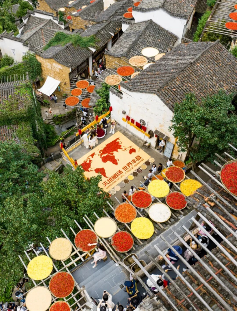 【篁岭晒秋】 挂在山崖上的篁岭古村,“地无三尺平”,数百栋徽派民居在百米落差的坡面错落排布,每当日出山头,晨曦映照,整个山间房屋晒架上五彩缤纷的丰收果实,绘就出美丽的“晒秋”农俗景观。春晒茶叶、夏晒山蕨、秋晒果蔬、冬晒乡俗……一年四季延绵有续。“晒秋”是篁岭古村500年来延续至今的晒谷物特色民俗景象。它反映了以篁岭为代表的山居民众原生态的晒物农俗,是劳动人民对丰收喜庆和未来生活所赋予的质朴美好的期待,并逐渐沉积为一种民俗和文化。适时集合前往酒店,安排入住。之后前往『婺女洲』欣赏夜景,根据自己游玩时间自行返回酒店。婺女洲度假区以婺女飞天传说故事为核心,是以新式徽派建筑风格为特色,园内涵盖《遇见·婺源》、徽艺文化、非遗体验、夜游体验等项目。情景演艺江湖绝技唯美国风武林演艺等各种演出活动应接不暇。