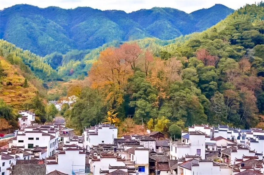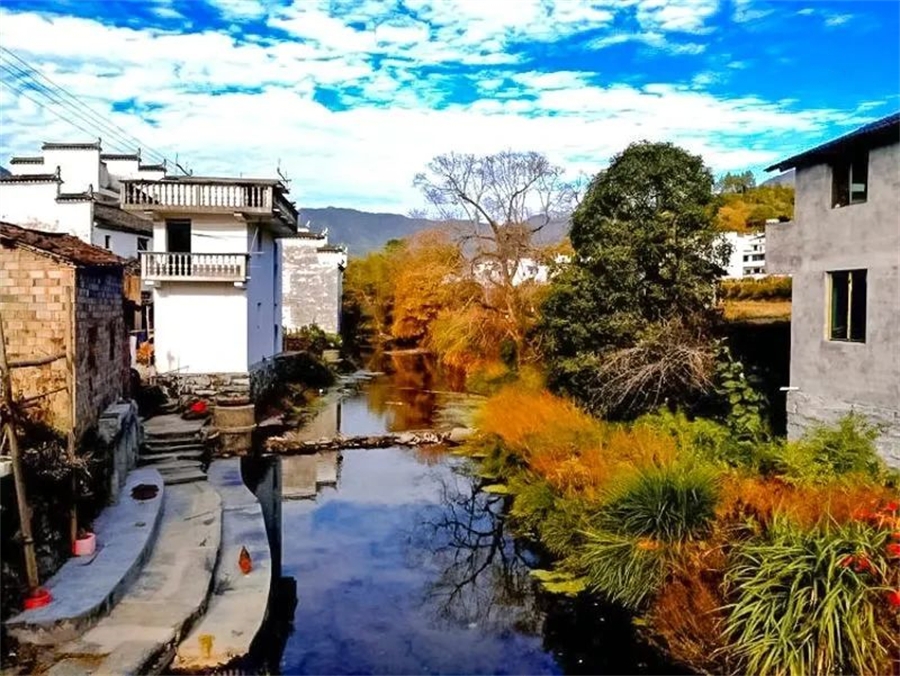 菊径村菊径村始建于宋代初期,整个村庄布局独特,文化底蕴深厚,是个典型的山环水绕型村庄,四周高山环绕,一条小溪环绕整个村庄,符合中国的八卦“后山前水”设计,被誉为“中国最圆的村庄”,犹如世外桃源。