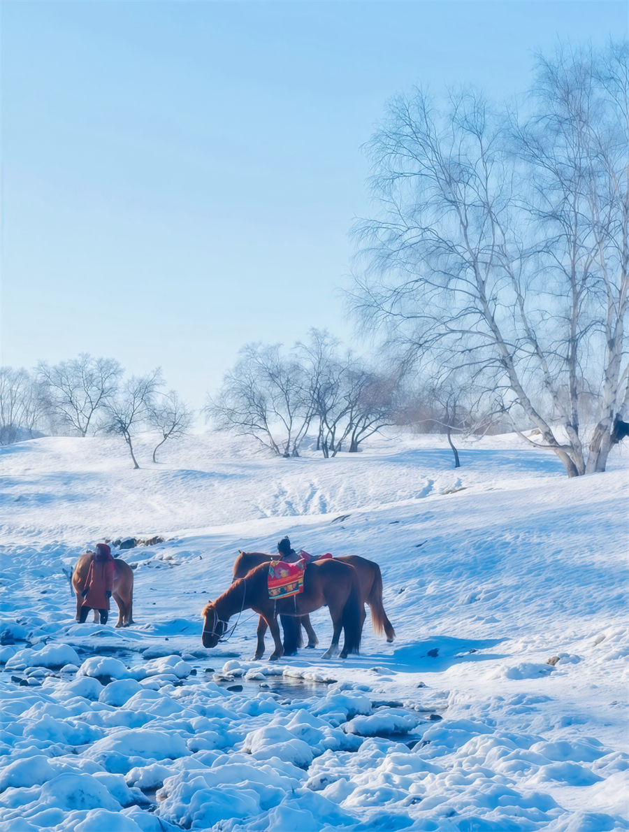 早上|早餐后继续乘坐越野车前往乌兰布统的【小河头】欣赏树挂(也叫雾凇)在低温的大地结晶,这就是美丽的冰花,大量的冰花落在树上,牧场的护栏上,电线上,美景从此出现。这就是大家期待的雾凇(雾凇视受天气影响较大,不一定能看到)【马踏飞雪】 拍摄雪地狂奔的马群(费用自理),马倌会根据大家的拍摄角度让追赶着马儿奔跑在辽阔的大草原之上。冬季拍摄雪地奔马场面远远好于夏秋季节奔马的场面,拍摄马匹在雪地奔跑,鬃毛、马尾、溅雪、哈气的画面层次动感强烈,气势磅礴。看完日出之后前往【影视基地】山缓川平,水草丰盛,有草场、有湿地、有桦树林,每年吸引数以万计的艺术家来此采风,是摄影家的创作基地、美术家的十里画廊、影视家的露天影棚。《汉武大帝》《康熙王朝》《还珠格格》《大汉天子》《贞观长歌》《新射雕英雄传》《狼图腾》等60多部影视作品都来此拍摄过外景,素有“草原电影城”的美誉。我们随后驱车前往【野鸭湖】体验刺激满满的越野车冰上漂移,冰上越野串串烧。越野车拉动雪圈,在雪地上呼啸而奔,体验真正的速度与激情。我们可以大声尖叫,在此刻的疯狂中放松身心,感受最纯粹的畅快!雪上娱乐追忆童年,一起在冰上滑冰车,抽冰尜。玩雪撒欢......多种游玩项目带你找回童年的简单快乐!让你在这个冰雪世界远离城市的喧闹,体会草原冬天的温度。