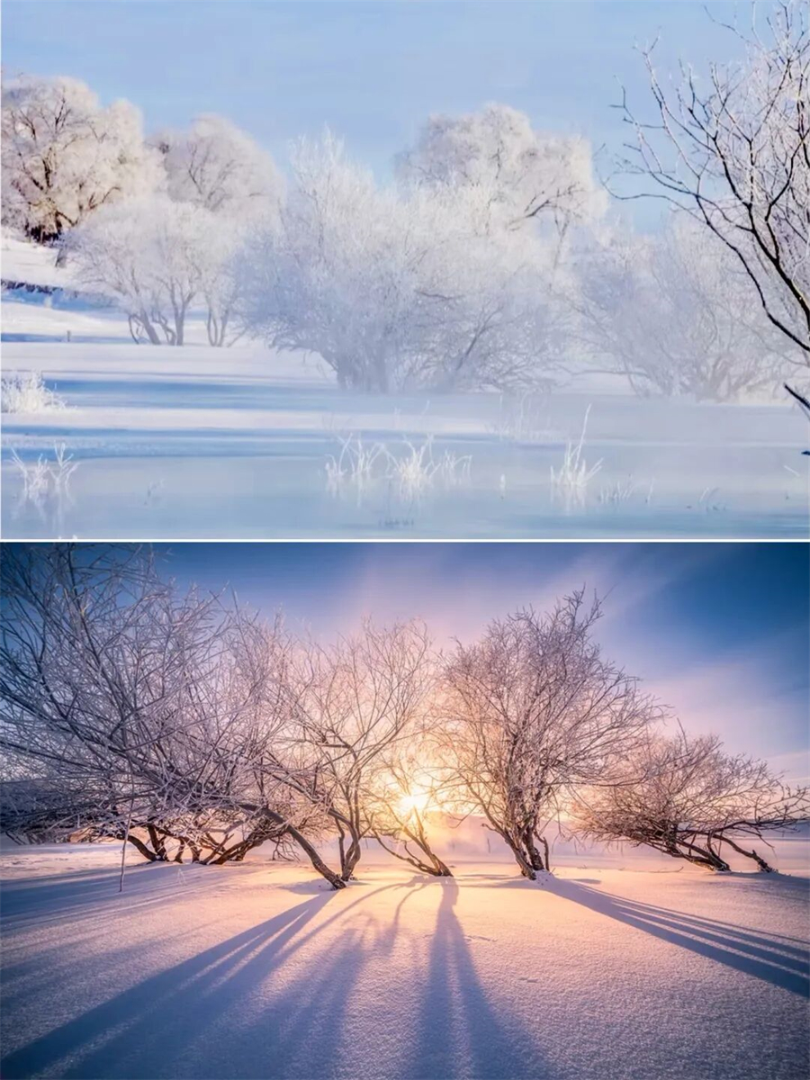 「 南井 」在这片银白的世界里,一切都变得宁静,仿佛能听到雪花飘落的声音。一望无际的雪原,成片的雾松。炊烟渺渺的原始牧村,每一缕炊烟都是与大自然对话的密语~每一根树枝,每一片草叶,都被冰晶装点,仿佛时间在这里凝固,带来了一种静谧之美。