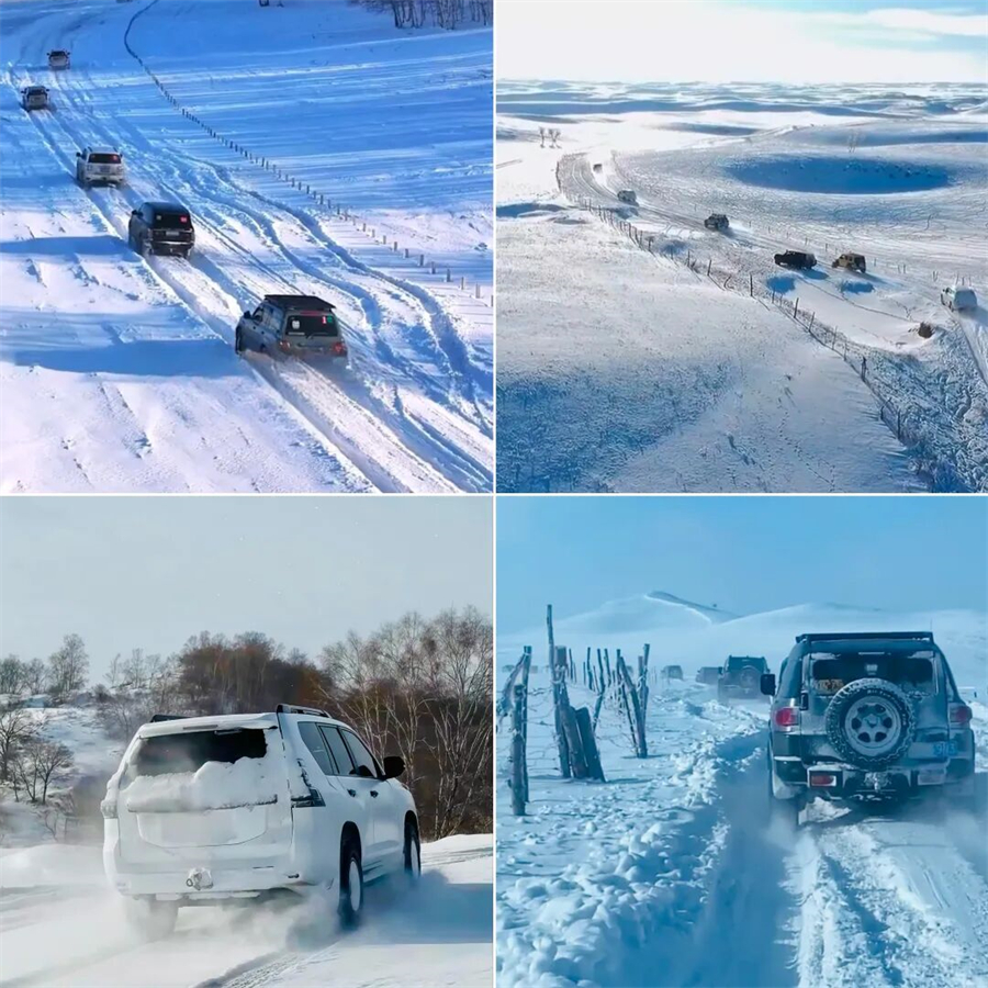 3、越野车穿越途中滑雪圈、冰雪漂移、拔河比赛等;