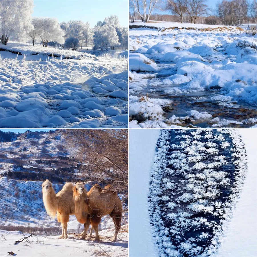 「 塞北雪乡 」此处不输北海道,超小众冬季必打卡地!抬眼望去连绵不尽的小山峦,行走在一望无际的雪原,静谧、广阔、唯美,在这里,时间静静流淌,山岭连绵,树木分布有序。早晚时分,马群和骆驼群穿越雪地,构成独特景观。