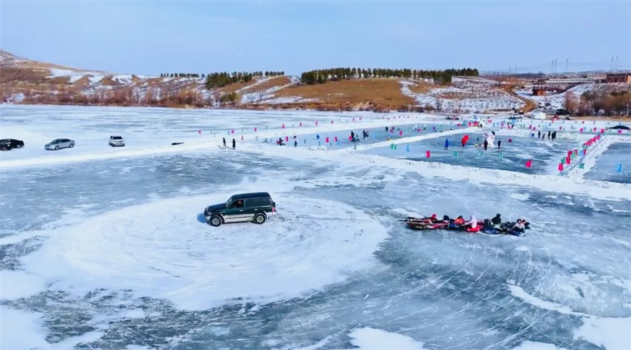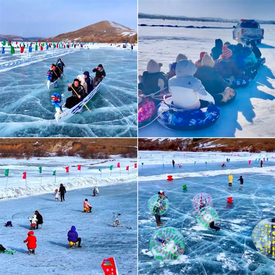 下午|跟随领队进入国家AAAA级景区【多伦湖·冬捕盛会】古老神秘的渔猎活动,热闹的气氛唤醒了这座沉睡在冬日里的湖泊。踏着雪海冰封,一起来感受不一样的冬捕魅力吧!这是北方独有的捕鱼方式,在厚厚的冰面凿出窟窿,用渔网下入水里进行捕鱼,这里虽然没有查干湖那样壮观的大规模捕鱼表演,但是可以看到当地渔民日常的捕鱼工作。可以参与其中,凿冰、下网、拉网,亲身体验冬捕的乐趣!随后在湖面体验冰雪娱乐滑冰车、坐龙舟、滑雪圈、抽冰嘎...