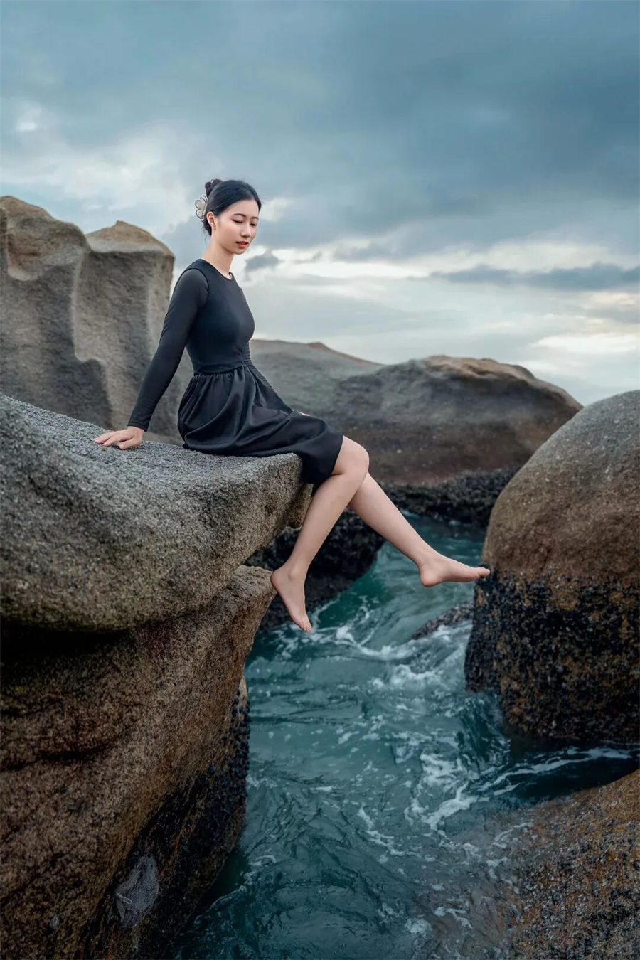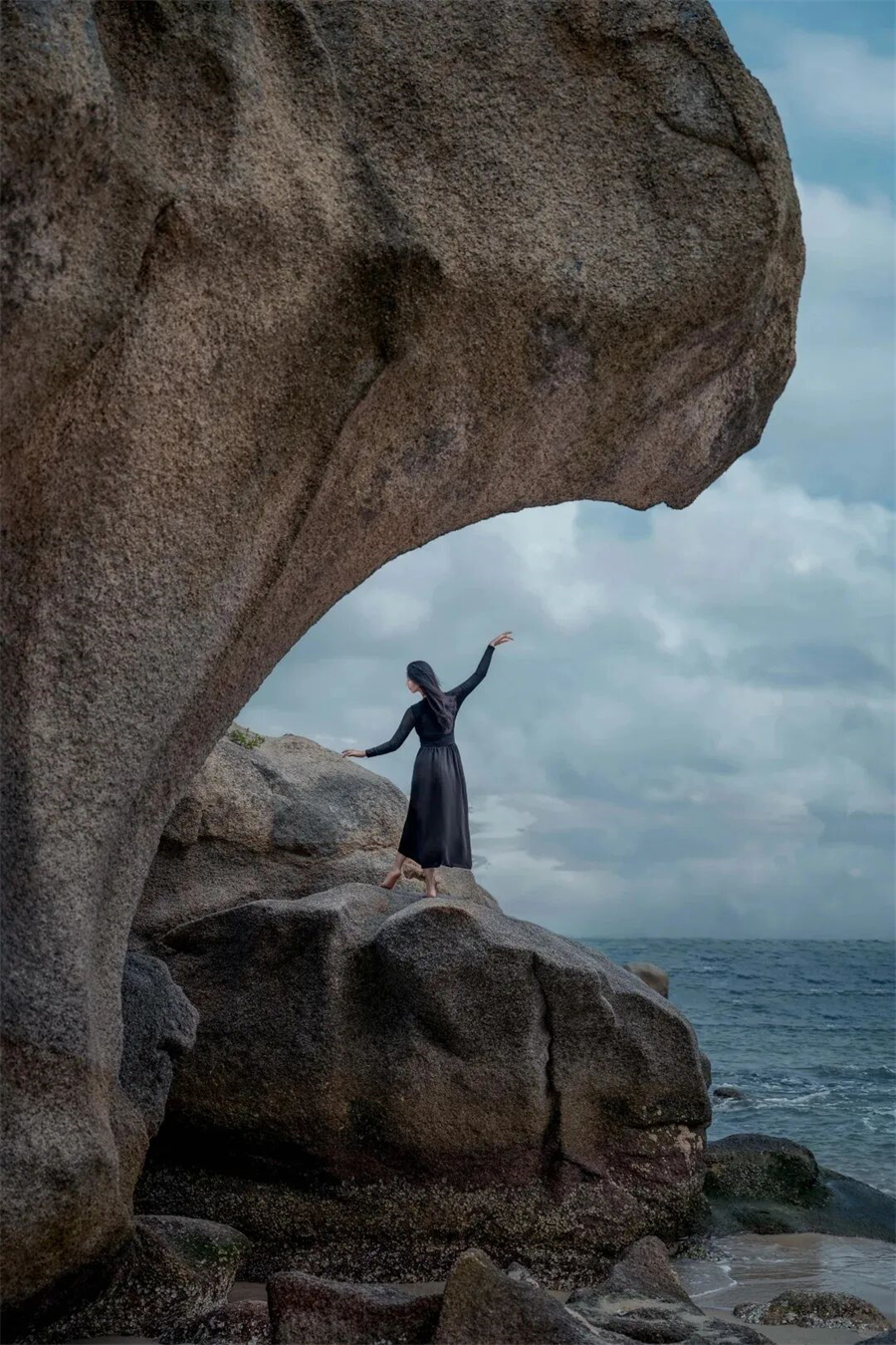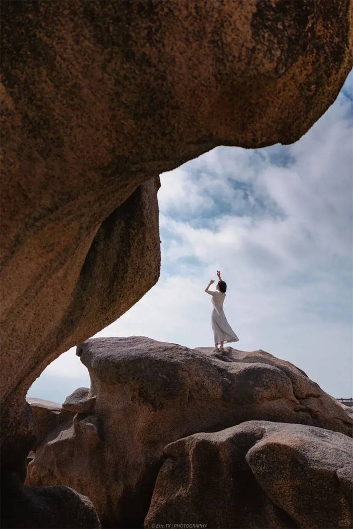墨子石公园,奇石嶙峋似外星遗落,海浪雕琢亿年时光,银沙碧浪间漫步,恍若穿越星际,每一岩皆诉说着大地史诗。