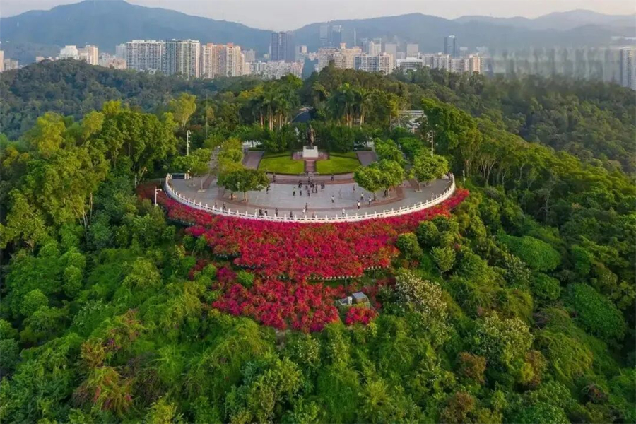 深圳莲花山公园,绿意拥城,山顶俯瞰都市繁华。邓小平铜像矗立,风筝广场欢声笑语,湖光山色醉游人,都市绿洲,心灵栖息地。