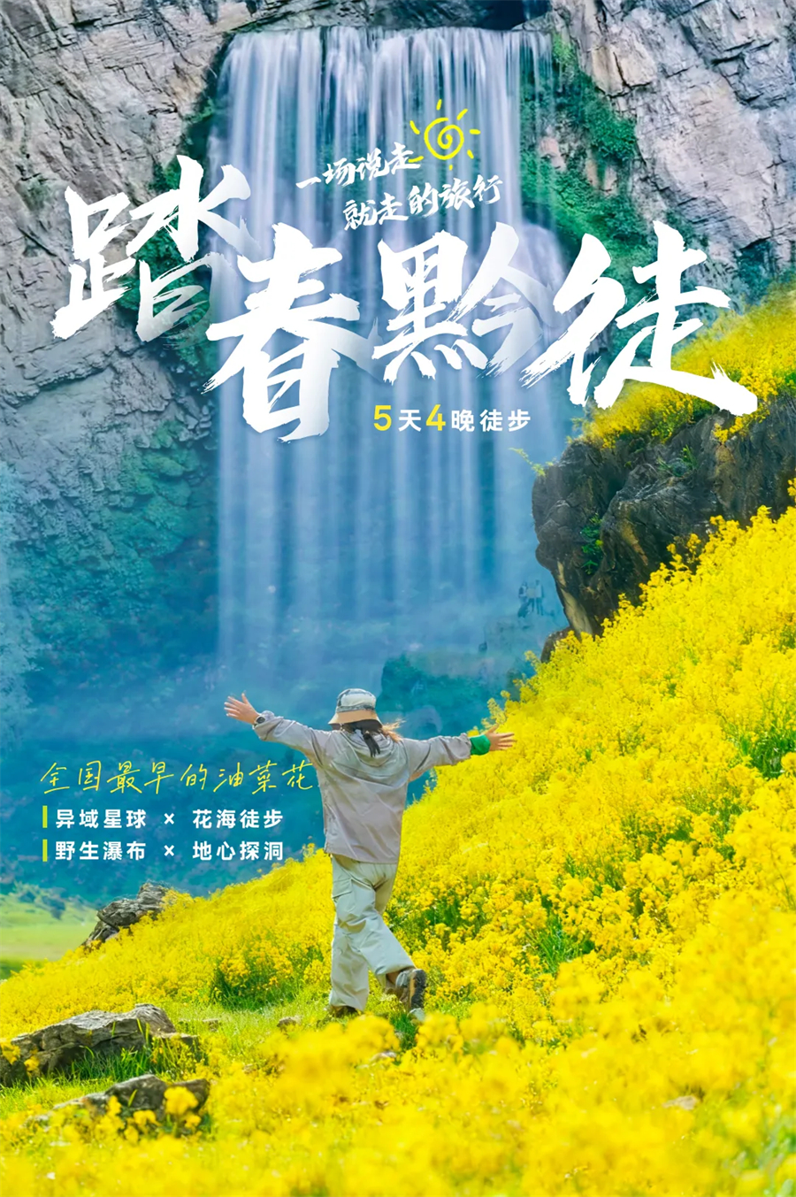 全程轻徒步包含2段野线+1段探洞+1段骑行,整体线路坡度平缓,路况安全;骑行穿越油菜花海,线路涵盖喀斯特石林、油菜花海、地下溶洞、山野瀑布,沐浴在云贵高原的暖阳之下,沉浸式感受这条春日限定的徒步路线。