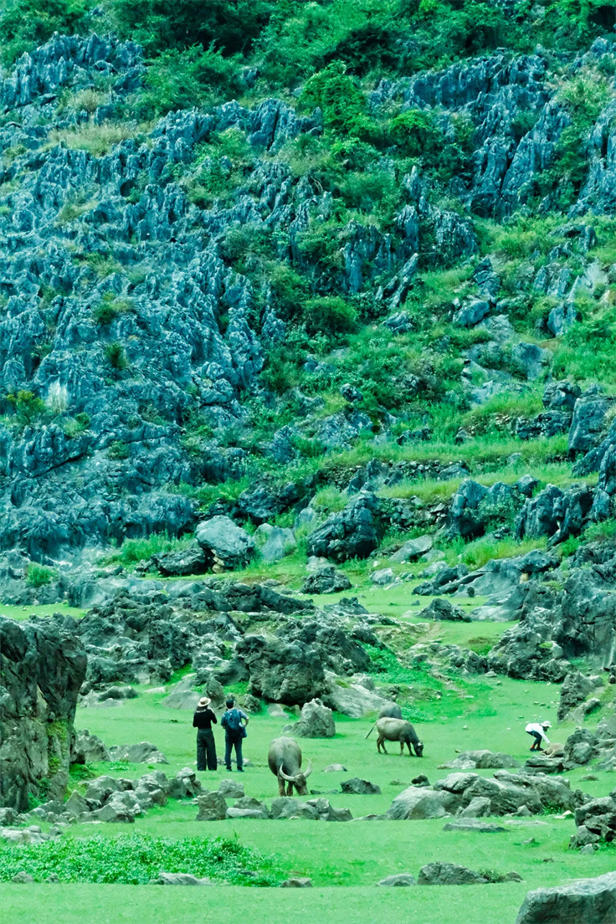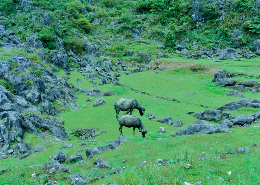 铜鼓荡之所以被称为“铜鼓”,是因为这里自带大自然的天籁之声。它们是乱石穿空、暗河嘶吼和惊涛拍岸共同组成若铜鼓般的声响,春天更是一大片石林嵌在绿油油的草地上,徒步会遇见山谷内宽阔弯曲的湿地、草坪、成群的牛马、石林、崖壁和穿洞自然形成的独特景观。