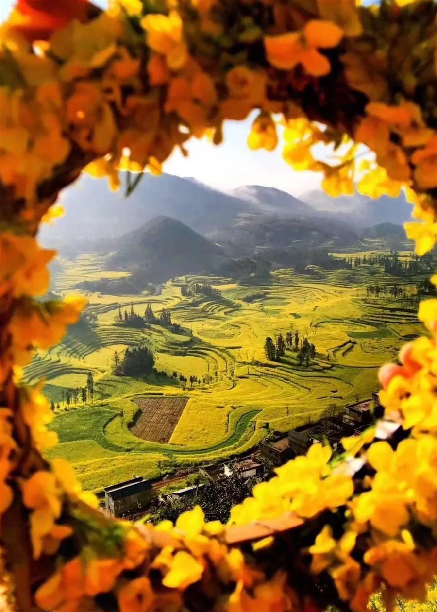 骑行准备工作完成,正式从将军桥出发,沿途骑行穿越油菜花海,中途有3个观赏点可停留休息拍照,终点观妄茶歇。在这儿可以俯瞰油菜花海,也可徒步花海间拍照。