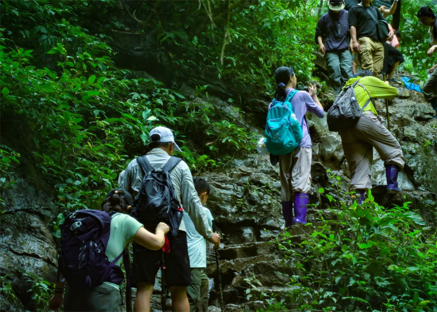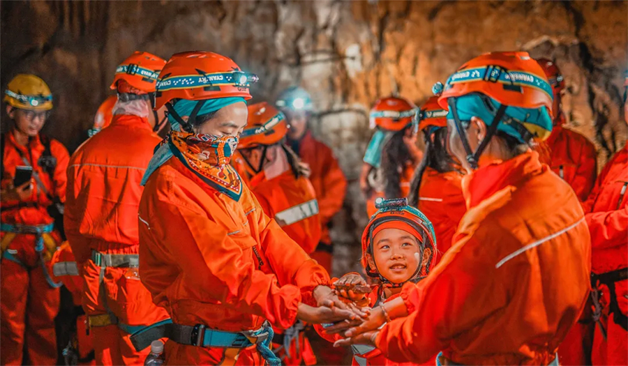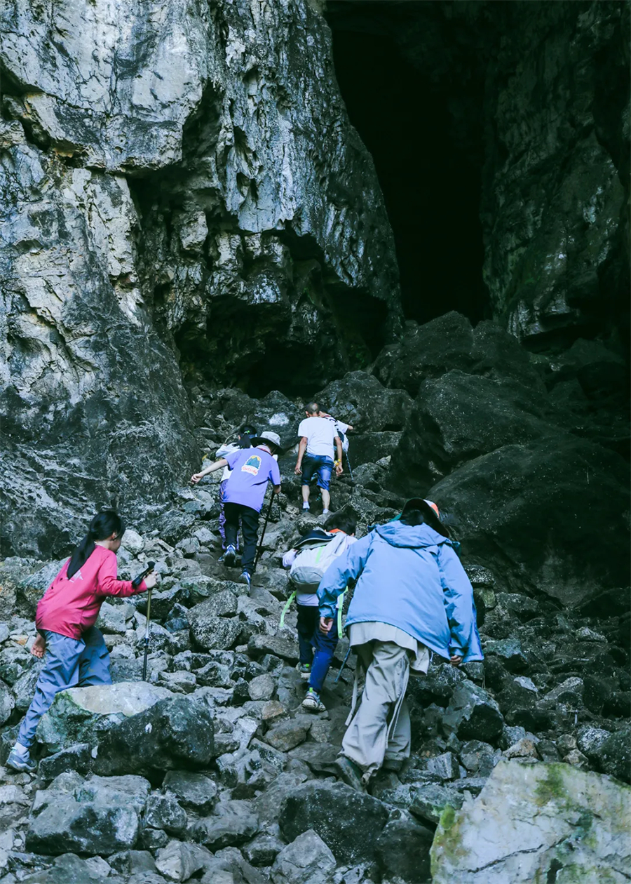 在教练的带领下正式开启我们的探洞之旅,第一站【寻龙区.解密寻宝】寻龙探洞寻找“龙之元素”,独创属性收集;【岩壁攀梯】近距离感受岩壁的地质与岁月痕迹,克服重重困难到达高处,收获居高临下的壮阔视野与成就感;【洞穴电影】在岩壁的滴水声与电影氛围感拉满的环境中,开始一场特别的狂欢派对;【探秘区.征服地心】洞穴内钟乳石,石笋林立,被灯光所折射出的奇幻光芒,徒步其间,脚下崎岖湿滑,每一步都充满未知与挑战。