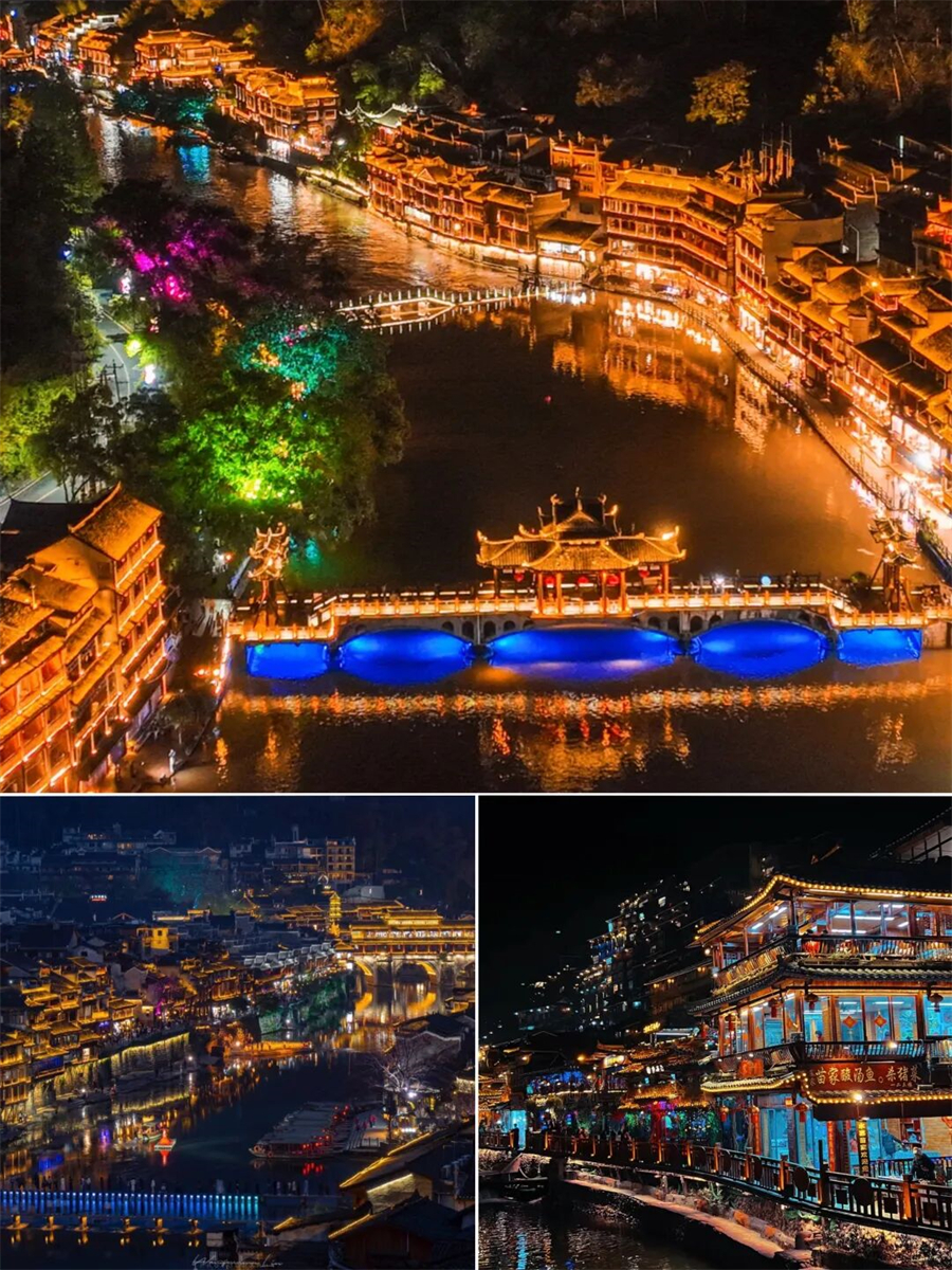 凤凰古城始建于清康熙四十三年,分新旧两个城区,依山傍水,沱江穿城而出,吊脚楼依河而建。小景点需要门票,沈从文故居、熊希龄故居、杨家祠堂、古城博物馆、崇德堂、东门城楼、虹桥艺术楼、万寿宫、沱江泛舟,每个景点只允许进入一次。