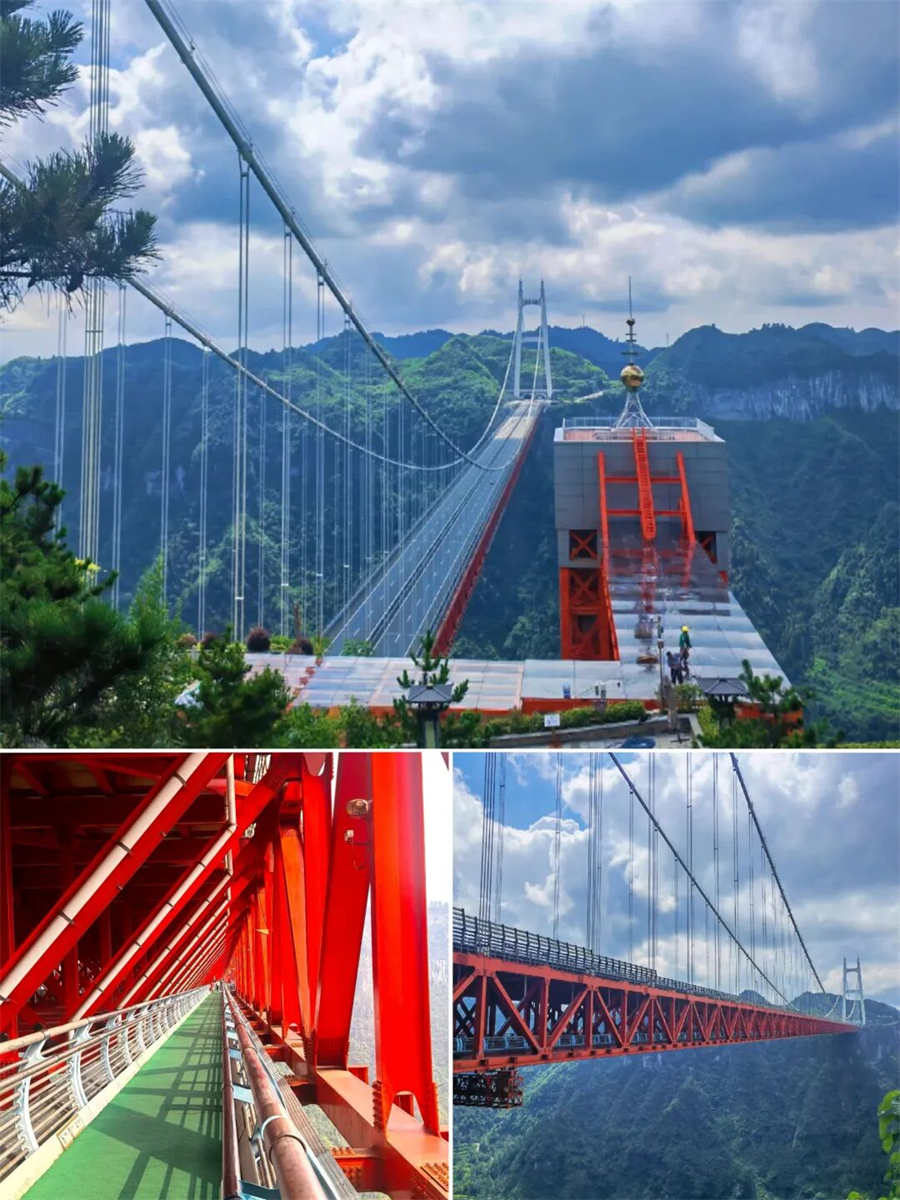 矮寨大桥 一脚踏云,峡谷在脚下奔腾,被世界桥梁史上的神话震撼到啦,矮寨大桥作为世界十大非去不可的建筑奇迹,以1176米主跨横跨德夯大峡谷,330米垂直高度堪比百层楼宇。钢索如苗银细链,桥塔似苗族图腾,现代工程与湘西风情碰撞出魔幻大片感!联合国都点赞的“超级工程”,此生必看。
