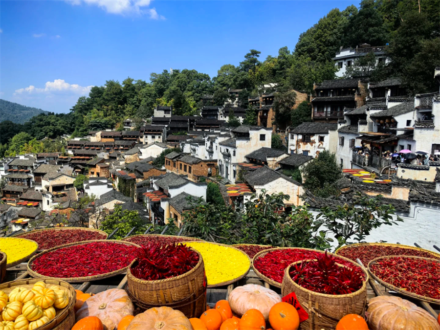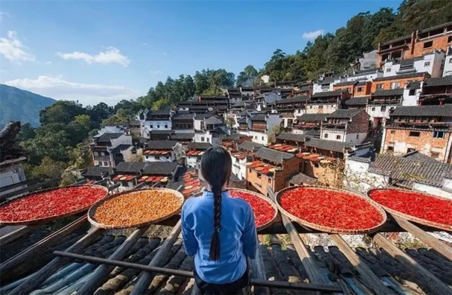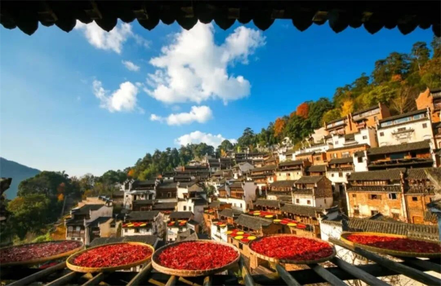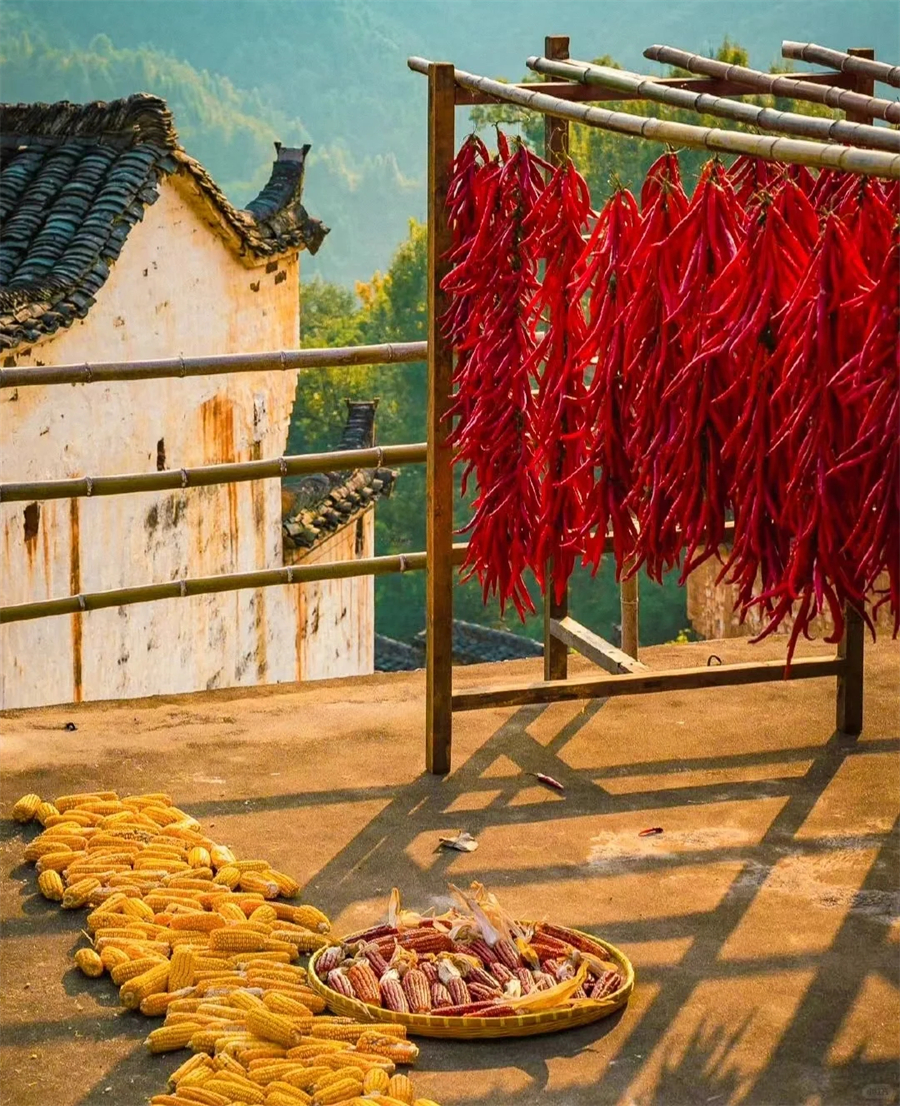 • 篁岭晒秋每年秋季,整个山间、房屋、晒架上,都是五彩缤纷的丰收果实,看似平淡的淳朴民风景象,却是让人最感动暖心的一幕。