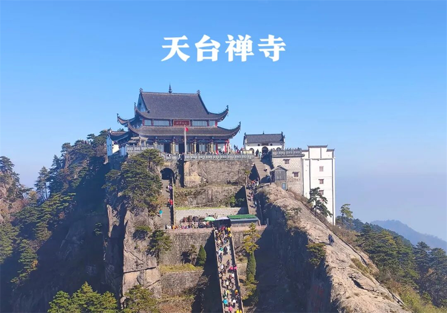 古人称赞天台“由天台以望群峰,如儿孙绕膝。....阴晴雪月,旦暮异观,出没云霞,变化万状。凡九华诸峰之奇,必登天台而后能毕见。故游九华而不登天台,如未至九华也”。