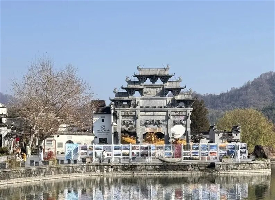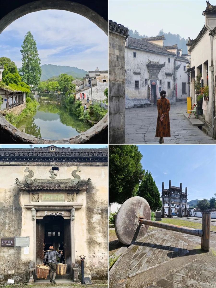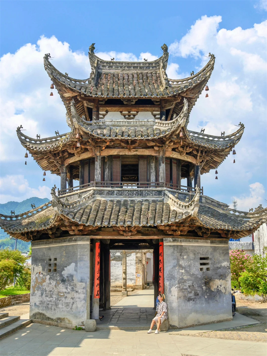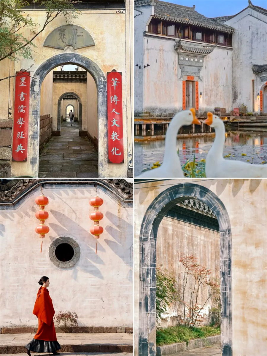 这里几乎保留了最原始的古村风貌 流连于古街古巷 出入古宅古祠 信步在青石板路上 仿佛走进了一幅徐徐展开的水墨丹青画卷 石拱桥静静伫立 连同塘边鳞次栉比的徽派民居一同倒映在如镜湖面 远村升起或青或白的袅袅炊烟 不时有村民出来溪边浆洗 携幼子嬉笑而归 古村里一半是人间烟火 一半是诗情画意 时光也在乡村清静幽适的闲居情调里慢了下来 。
