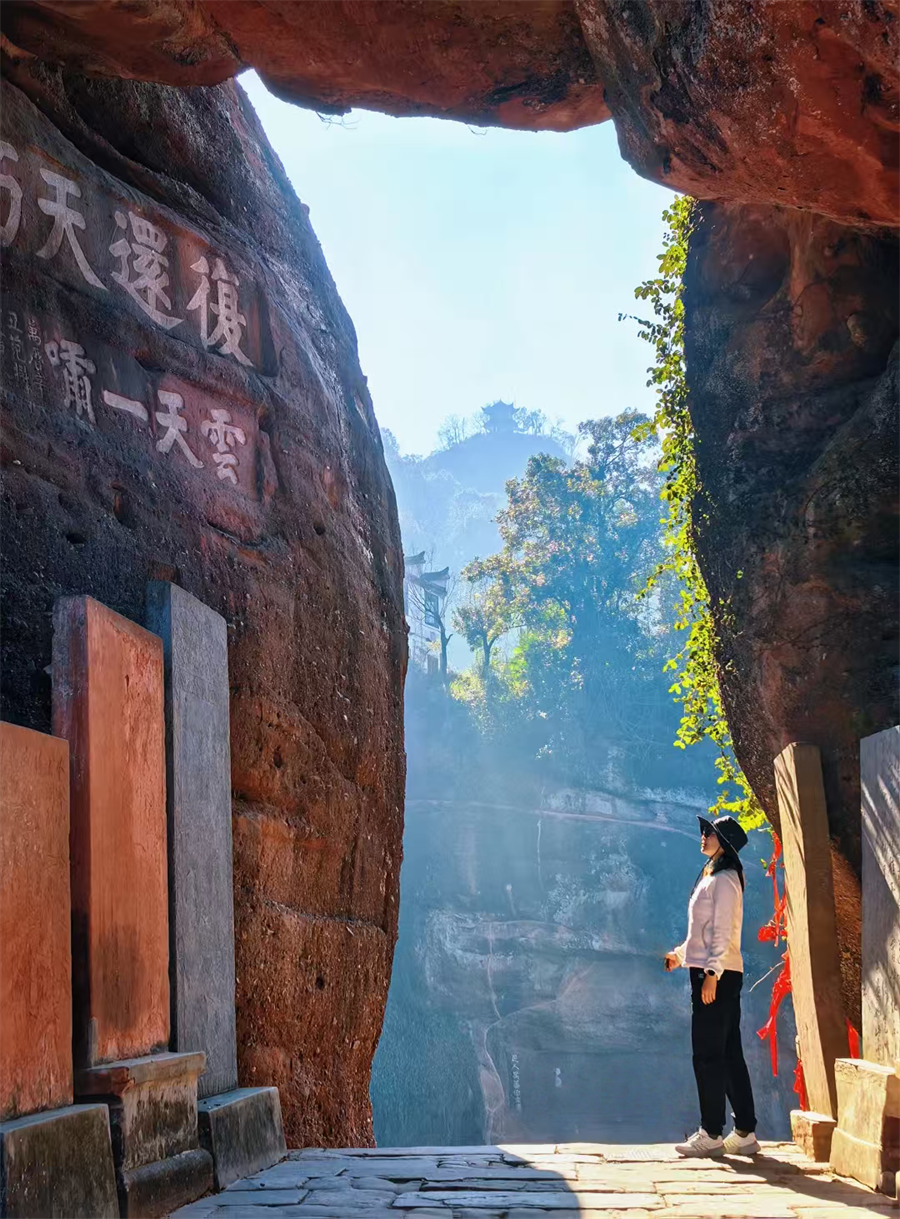 齐云山它是中国四大道教名山之一,乾隆帝曾赞它“天下无双胜境,江南第一名山” 。丹霞奇观:齐云山是典型的丹霞地貌,赤如朱砂的山体在阳光下格外壮观 。沿着永乐古道登山,能看到寿字岩、碧莲池等众多摩崖石刻。方腊寨独耸孤立,攀爬时仿佛能体会到“蜀道难”。还有那神秘的丹霞长廊,走在栈道上,仿佛闯进了武侠片的取景地。
