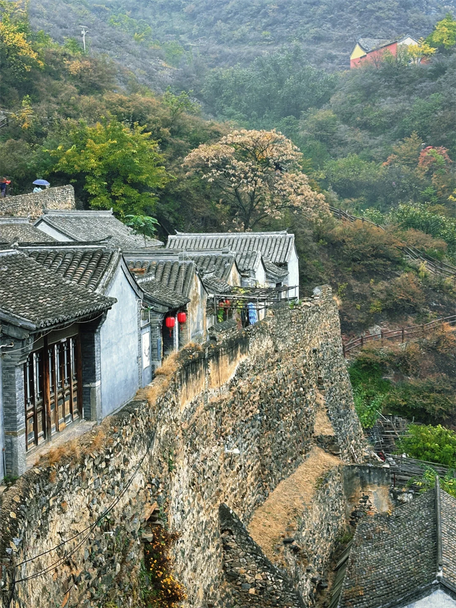 吴冠中先生于1986年在爨底下村写生时,称爨底下村是“北方民居的周口店”,“仿佛从火山灰里扒出来的意大利庞贝古城”。春之韵味,莫过于古村落,一幅幅油画,绚烂而有诗意。片石砖木,烟火人家,都是乡愁的滋味,石墙青瓦,古木参天,各色果树与山水建筑形成一幅绝美画卷。