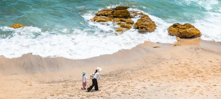 中午我们将坐在巨石旁,听雪白浪花拍到岸边的声音,悠然的拿起汽水喝上一口,分享我们的路餐干粮,零食水果。或是在沙滩拾贝留念。