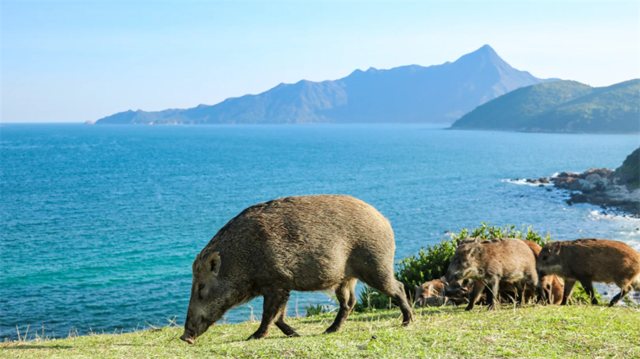 中午在【塔门岛】享受香港最美的海岛风情,大海蓝得就像一块宝石,透亮透亮的。这里就像个原生态的乐园,逃离城市的喧嚣,你能看到放养的牛悠闲地吃草,蜘蛛在树上结网,甚至还有野猪跑来跑去。