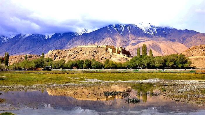DAY7.喀什—白沙湖&白沙山—喀拉库勒湖—石头城&金草滩—塔吉克家访+换装体验—塔县今日一早沿中巴友谊公路出发前往塔县,团友可以在白沙湖及白沙山前留影(如需进入门票自理),还可以近距离欣赏冰山之父——慕士塔格雪峰与高原湖泊—喀拉库勒湖(如需进入门票自理),抵达塔县后参观石头城&金草滩,石头城是西域三十六国之一的蒲犁国王城遗址,据考证距今已有2000多年的历史,遍地碎石与城楼无不彰显出岁月的厚重感,队员可以去金草滩湿地拍摄石头城倒影,走进塔吉克人家,换上塔吉克族的民族服饰品尝民族特色奶茶和点心,观赏塔吉克族特色鹰舞,听主人讲述高原生活的故事。后前往酒店入住。