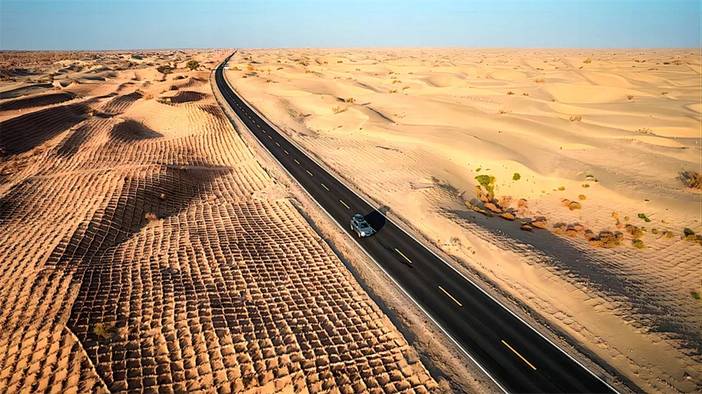 1. 如在沙漠公路拍摄公路照,注意来往车辆,安全第一;