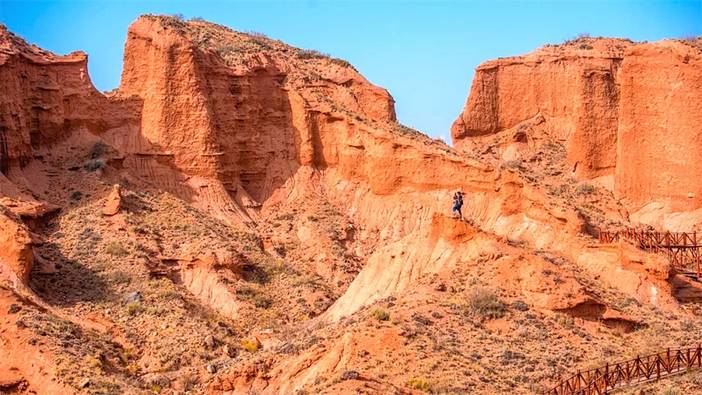 1. 温宿大峡谷日照强烈,风沙较大,请提前做好防晒、防风沙准备。