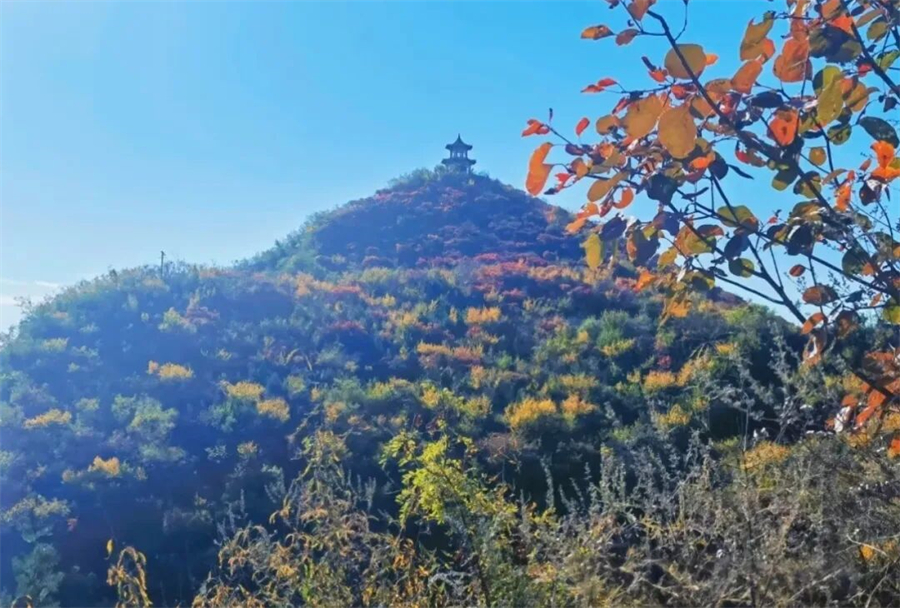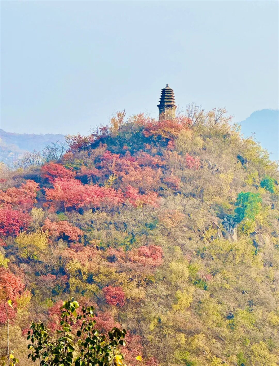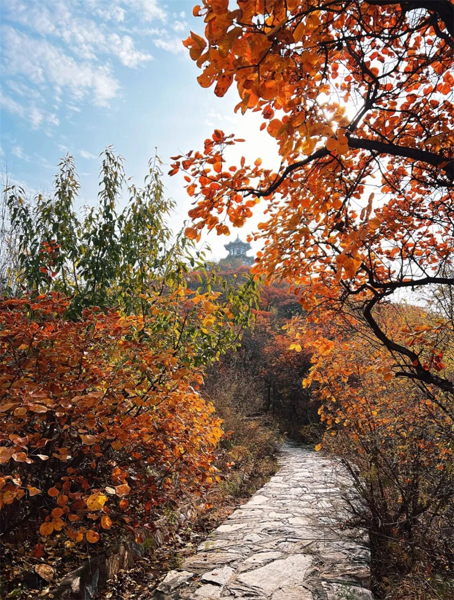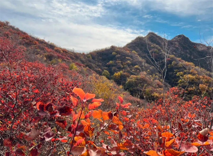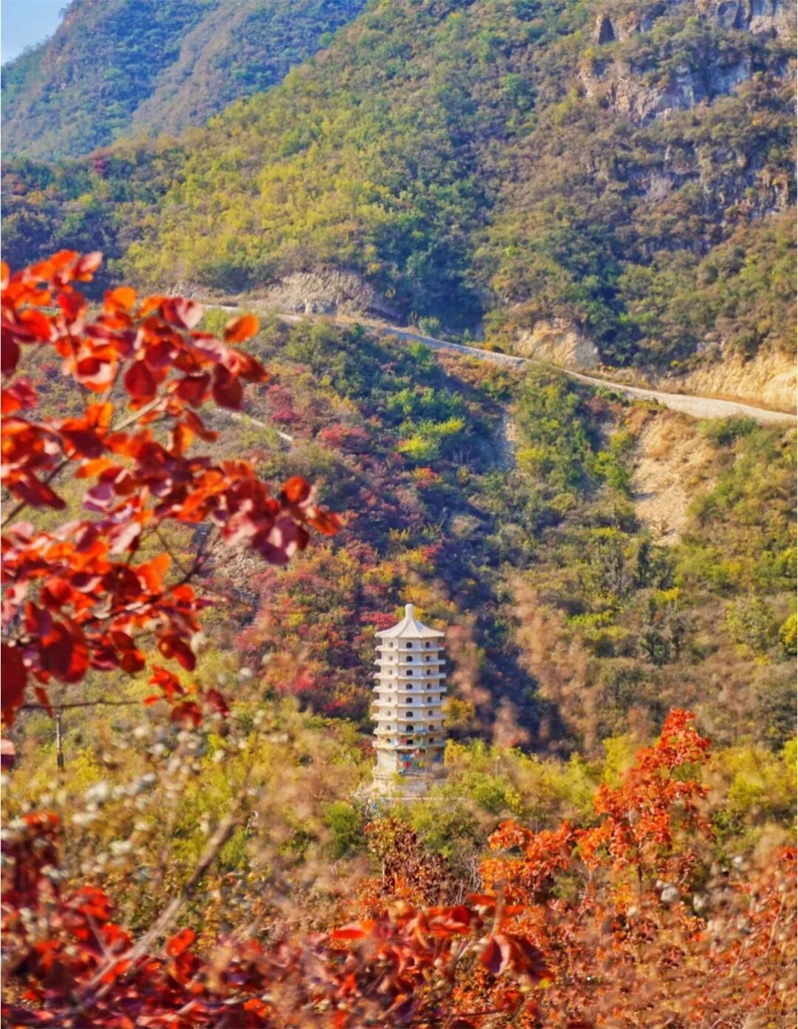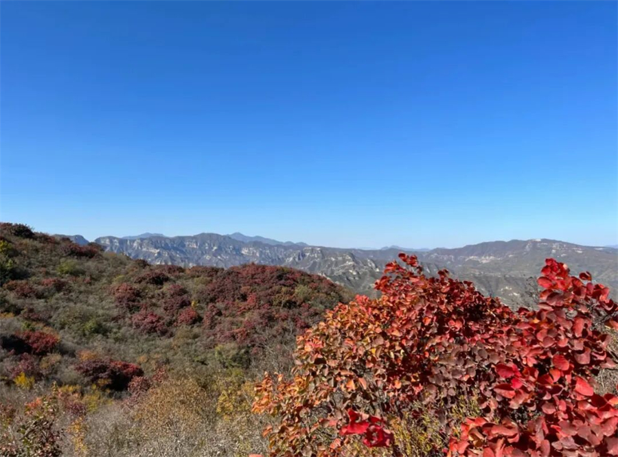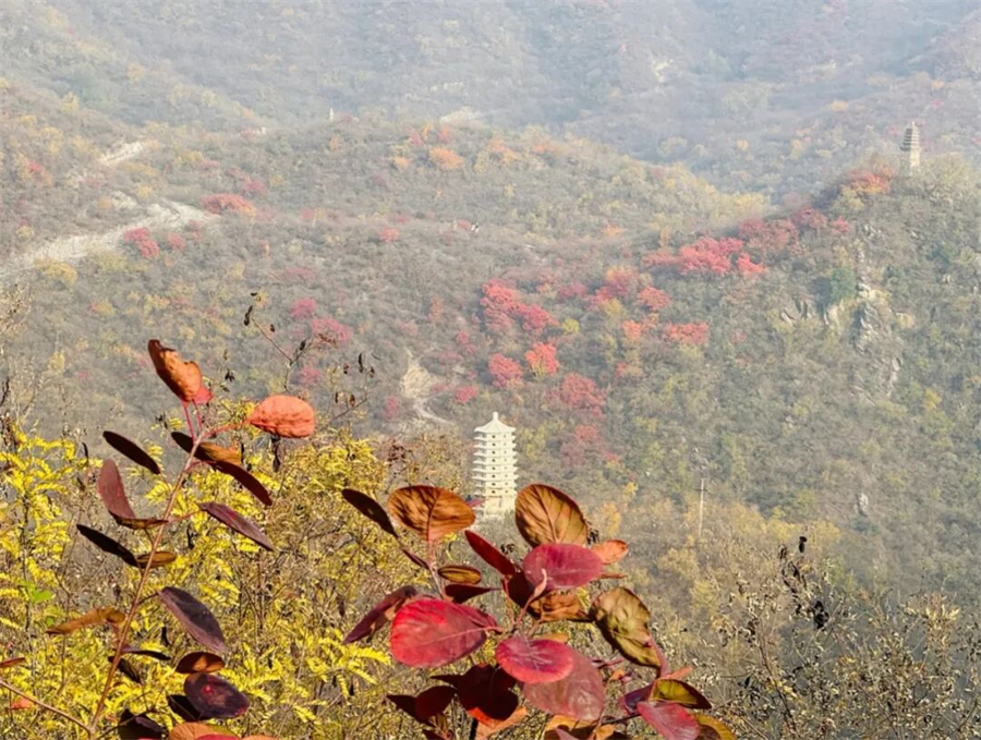 09:30|上午到达徒步起点鲁家滩,在领队带领下开始环线穿越。谷积山位于房山区与门头沟区交界处,海拔711米,属西山。山势和缓,附近山间多古迹,有喇嘛庙、石碑、宝塔等,徒步全程大多为碎石路,犬牙差互,也有些土路,有些则必须翻越石头,两边山路都是打凿岩石穿山而成。