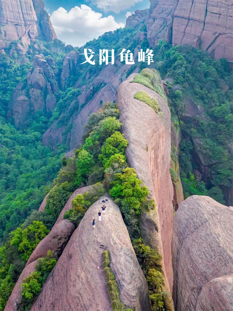 龟峰是世界地质公园龙虎山-龟峰地质公园和世界自然遗产"中国丹霞"的组成部分,位于弋阳县城南信江南岸,地处三清山、龙虎山和武夷山之间,因其"无山不龟,无石不龟",且整座山体就像一只硕大无朋的昂首巨龟而得其名。丹霞地貌造就了石峰、石柱等怪石奇观,发育于距今1.35亿年的白垩纪晚期,是雨水侵蚀型老年期丹霞。