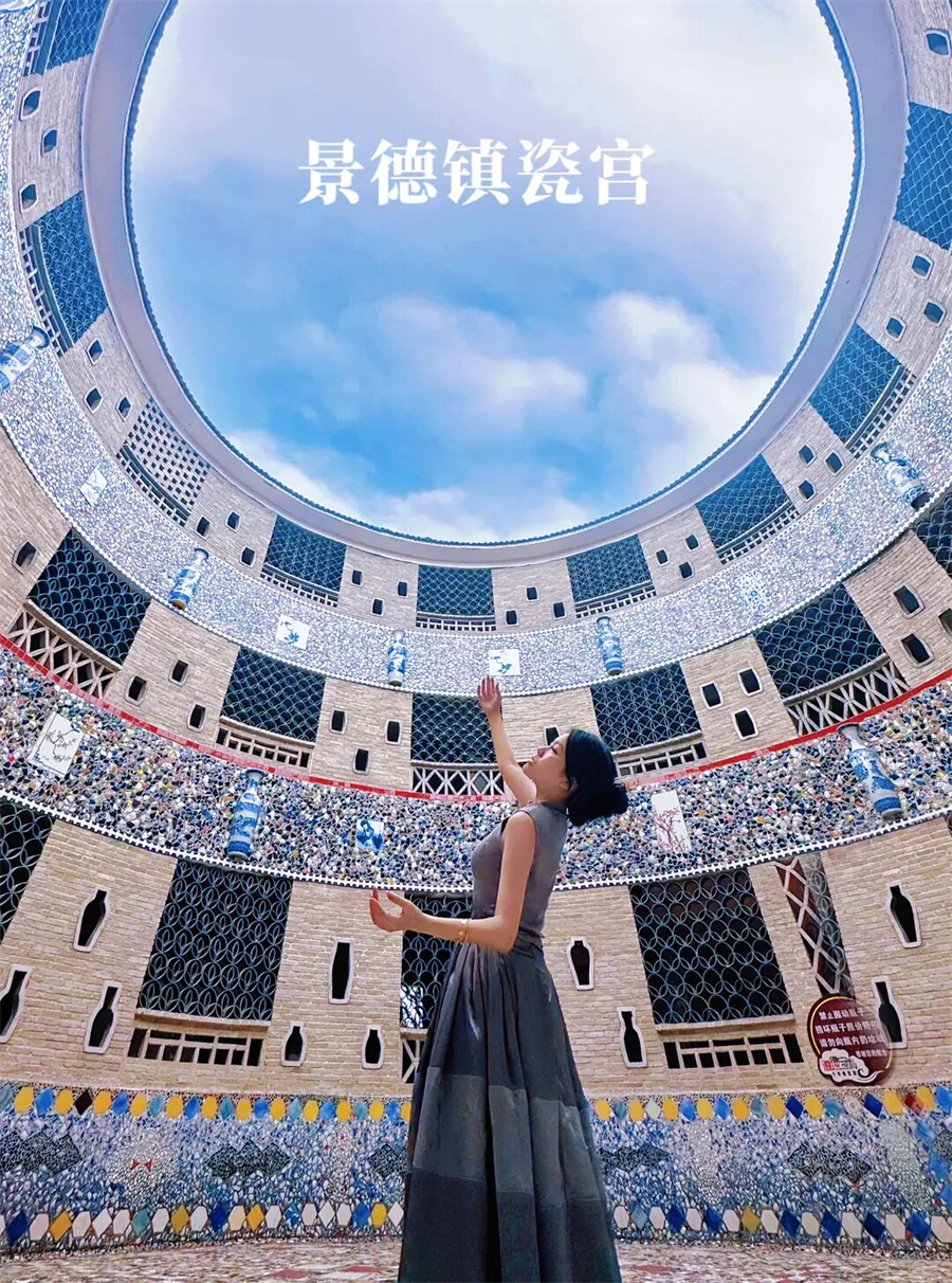 瓷宫一位老太太用七年的时间亲手盖起了一座堂皇巍峨的宫殿,堪称一座集陶瓷艺术大成的杰作,这就是景德镇著名的“瓷宫”为了打造出“博物馆”的样子,她用收藏的6万多件瓷器,砸成80吨碎瓷片一一嵌入墙壁。2017年,位于浮梁县新平村的第一座圆形宫殿“瓷宫”诞生了,宫殿内外装潢皆是经老人精心设计,极尽工艺精湛之能事。正是这份对瓷艺的热爱和对梦想的执着追求,最终造就了这座气势恢宏的“瓷宫”杰作,令中外游客赞叹不已。