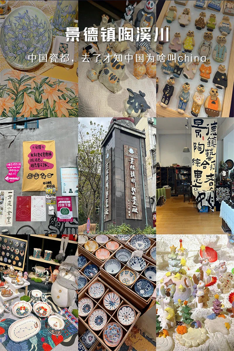 下午适时集合前往景德镇网红『三宝村』。这里是景德镇的“世外陶源”,一座特别的陶瓷艺术村落,是景漂艺术家聚集的地方;这里有美术博物馆、超棒的美学建筑、优美的自然景观、各种各样有意思的宝藏店铺、咖啡馆、以及随时可以进去体验的陶艺工作室;这里还有各式各样陶瓷文化的网红打卡地,大家可以尽情拍照留念!