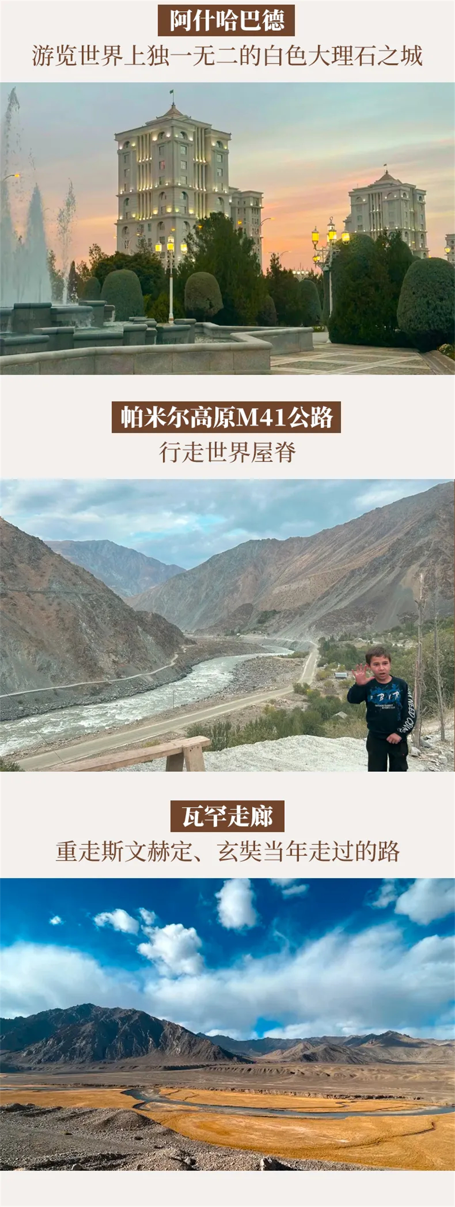 【行程概述】除了我们所熟知的地狱之门景区,在沙漠深处还有两个地狱之门的姊妹坑-水坑和泥坑,其中泥坑之内还有零散的火苗在燃烧,中午抵达世界上最神秘的首都之一-阿什哈巴德,这个城市的主色调是白色,是世界上唯一的白色大理石之城,在首都午餐后,我们将参观游览土库曼斯坦国家博物馆,然后和土库曼斯坦的国宝-汗血宝马亲密接触,并且可以在土库曼斯坦国家赛马场内亲自骑乘汗血宝马驰骋。之后安排阿什哈巴德城市内游览,分别前往中立纪念碑、独立纪念广场等,晚餐安排在酒店的九楼中餐馆,除了能品尝多日不见的中国美食之外,还能站在市中心的观景平台上一览阿什哈巴德的绚丽夜景。