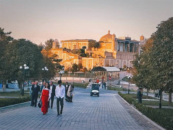 【行程概述】早餐后安排塔什干城市半日游,主要游览帖木尔广场、米诺尔清真寺、国家历史博物馆、独立广场后前往世界上最大的手抓饭中心品尝美味的塔什干手抓饭,然后开车前往丝路明珠、中亚历史文化名城-撒马尔罕,在撒马尔罕城市外围,为了2022年一带一路国际会议的召开,新建了一个颇具中国色彩的丝绸之路文化产业园,里面建有中国特色的酒店,我们将在撒马尔罕的酒店连住两晚,大家可以洗洗衣服,好好调整一下。