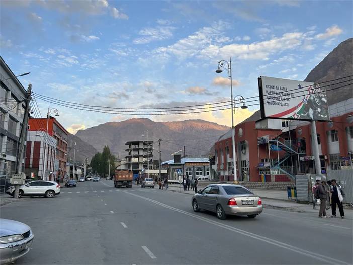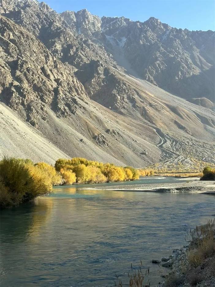 【行程概述】早起后,安排杜尚别城市半日游,参观游览鲁达基公园、老总统府,以及中国援建的新总统府、索莫尼纪念广场、曾经的世界最高旗杆、之后在杜尚别宾馆的中国餐馆品尝美味且熟悉的北京烤鸭后,开车离开首都杜尚别前往帕米尔高原方向,在经过检查站,检查完帕米尔特别通行证后不久,就开始沿着塔吉克斯坦与阿富汗的边界公路前行,这里与阿富汗仅一河之隔,河两岸的村子成镜像分布,河岸对面阿富汗人民的面部表情清晰可见。晚上抵达卡莱洪姆入住酒店休息
