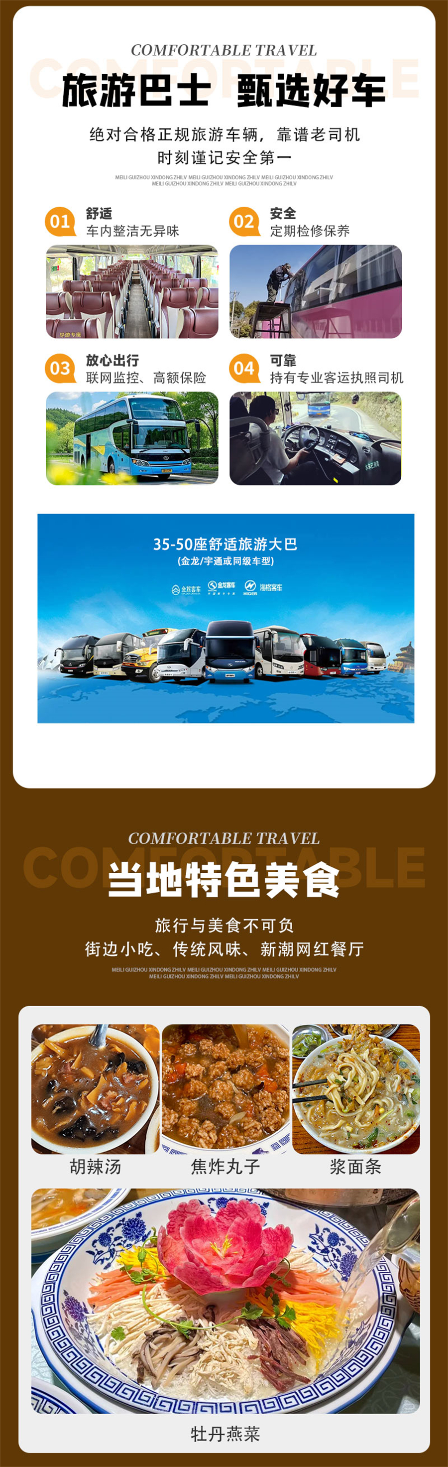2、车上座位顺序为集合时先到的先坐,发车之后保持原车原座(有老年人、晕车等情况的领队将酌情调整);