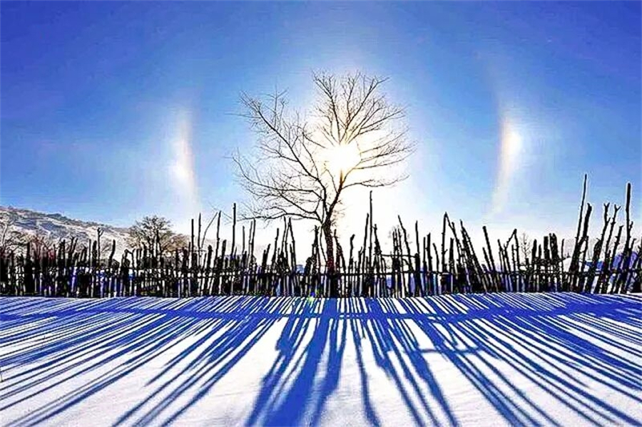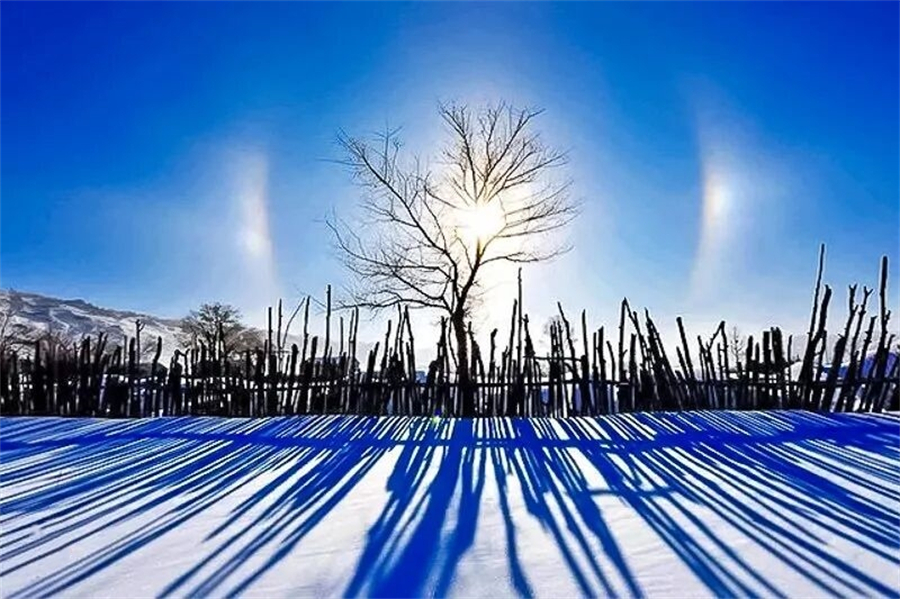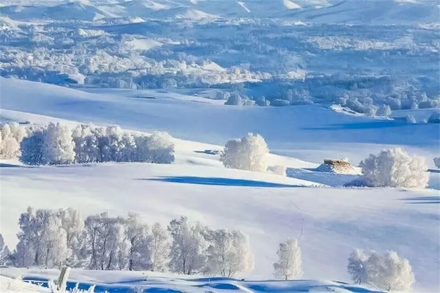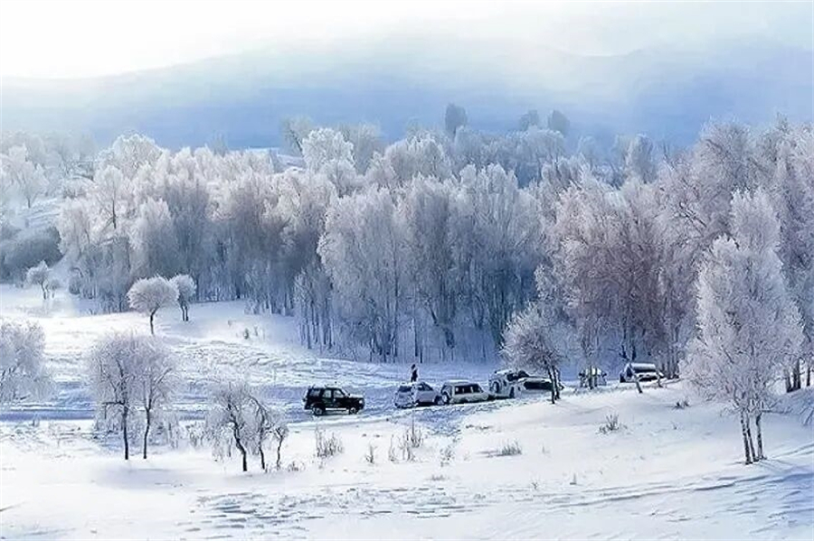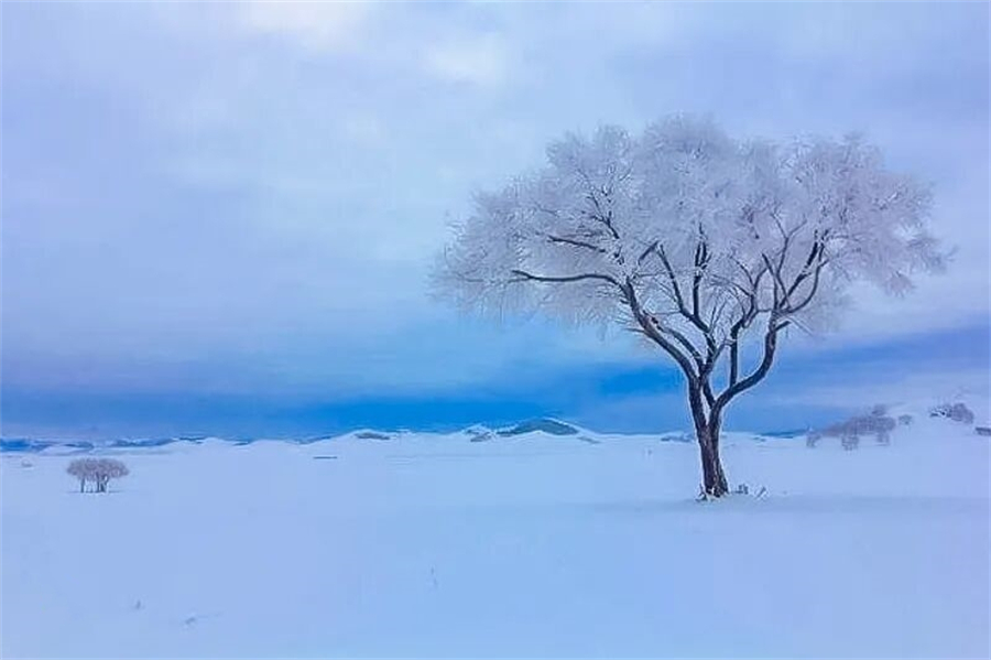 上午|早餐后我们换乘越野车前往乌兰布统的小河口欣赏树挂(也叫雾凇)在低温的大地结晶,这就是美丽的冰花,大量的冰花落在树上,牧场的护栏上,电线上,美景从此出现。这就是大家期待的雾凇(雾凇视受天气影响较大,不一定能看到,如当天没有我们换其它地方玩耍)。