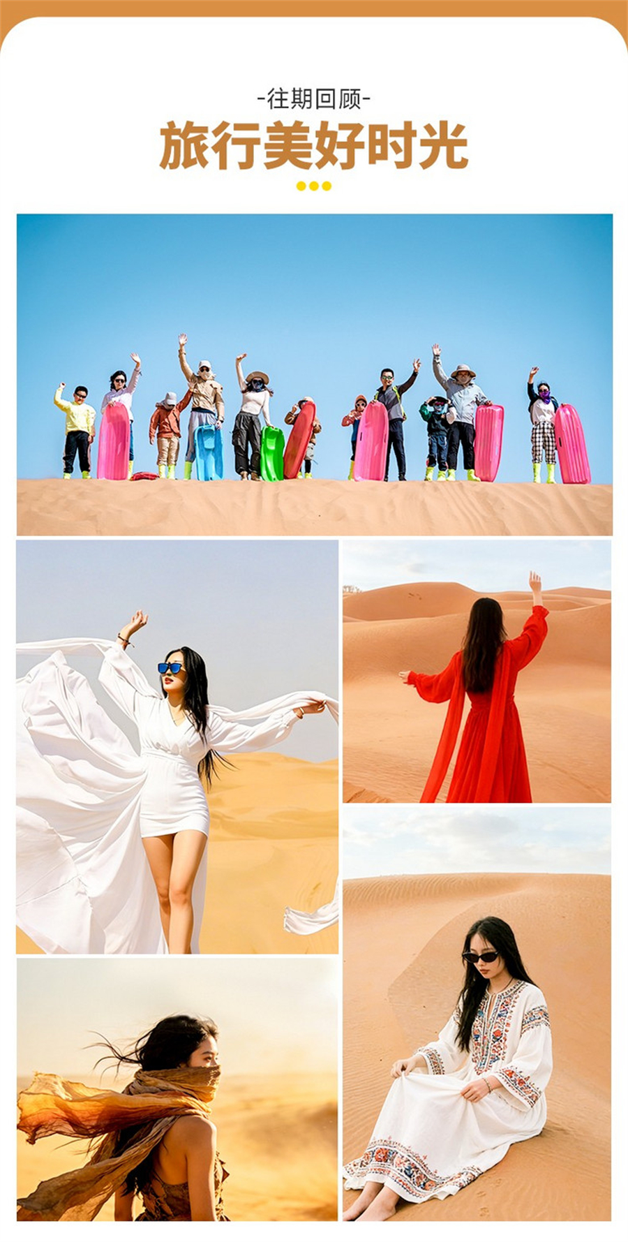 2、娱乐:景区内单独收费的娱乐项目等,如:仙沙岛/悦沙岛娱乐+骑骆驼+沙海游艇套票,260/人;