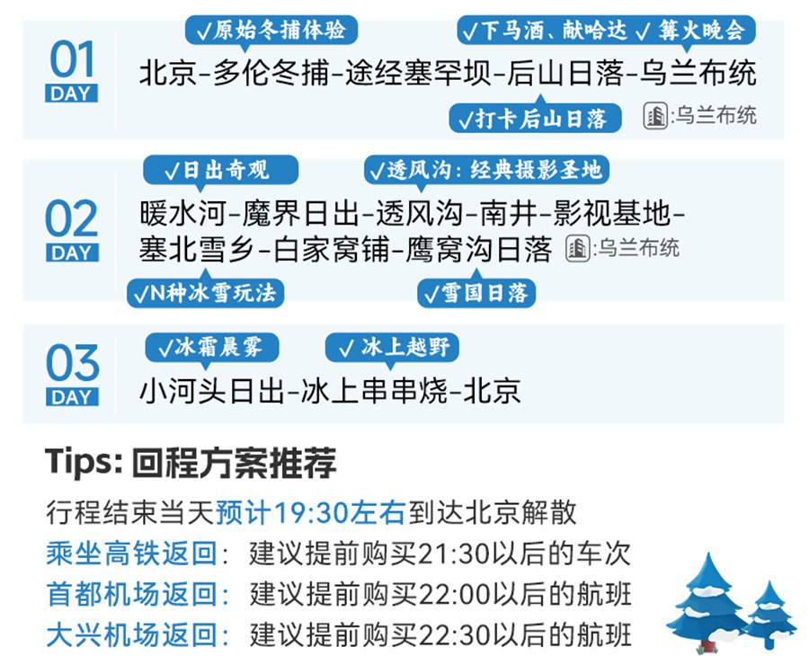 D1周五|北京-多伦冬捕-途经塞罕坝-后山日落-乌兰布统