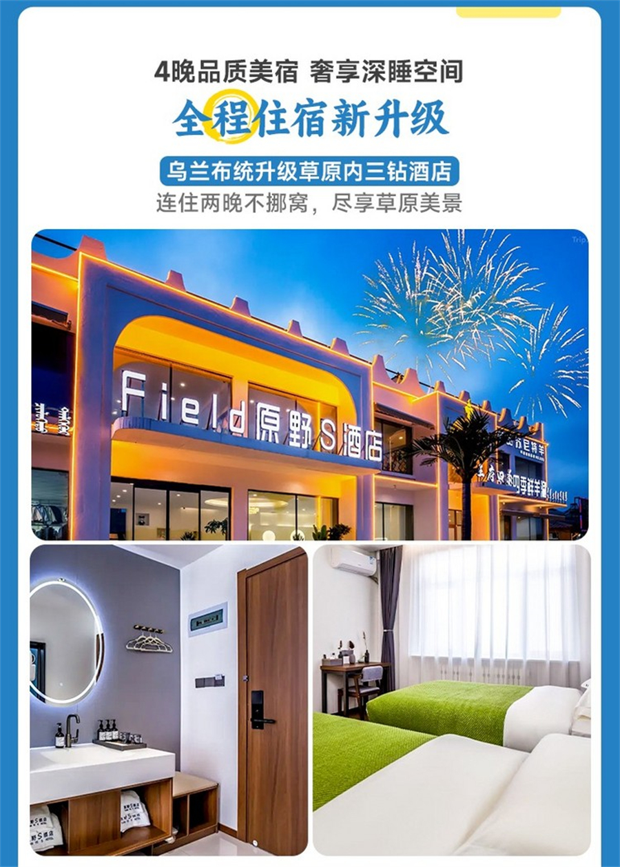 1、交通:北京出发及返回北京解散的全程专属用车及司机星级服务(含司机餐补、住宿)