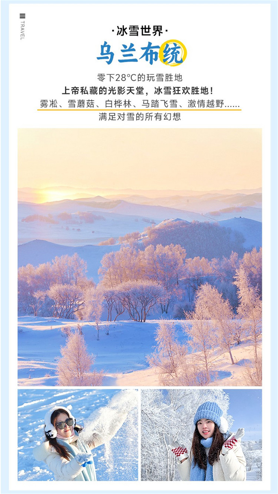 3、门票:乌兰布统和塞罕坝冬季不收费,如需收费请自理