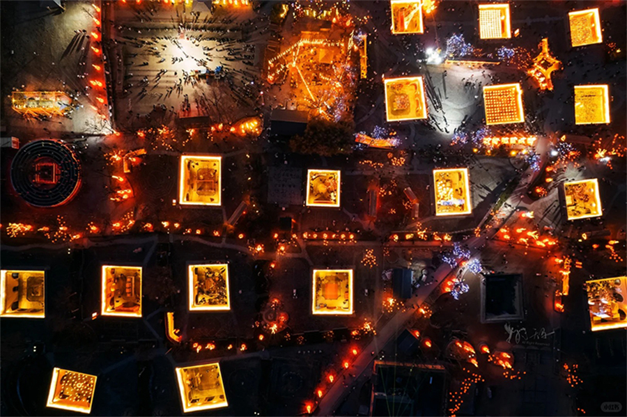 夜幕降临,白日里朴素的村落瞬间被点亮,灯笼、彩灯交织,宛如一座梦幻的“地下魔幻城堡”。融入春节特有的【非遗大集】,观看震撼的【打铁花】表演,炽热的铁水在空中绽放成千万颗流星,与绚丽的烟花交织,引来孩子们阵阵惊呼。