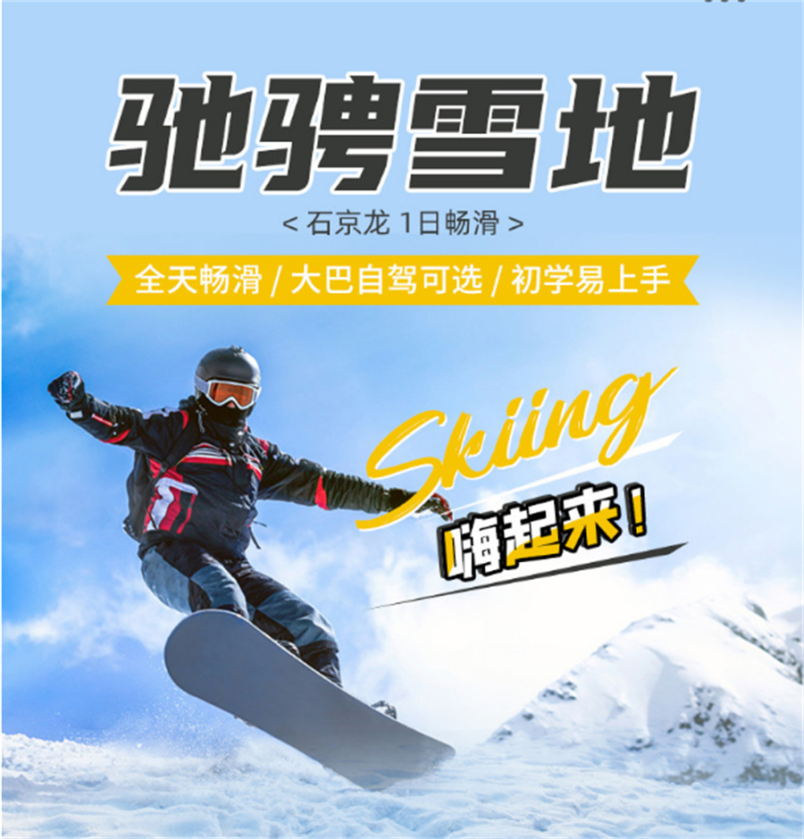 2)雪票:石京龙全天滑雪票(包含雪板、雪鞋、雪仗、魔毯、缆车)雪道全天不限时,雪道等开放情况以景区实际为准;
