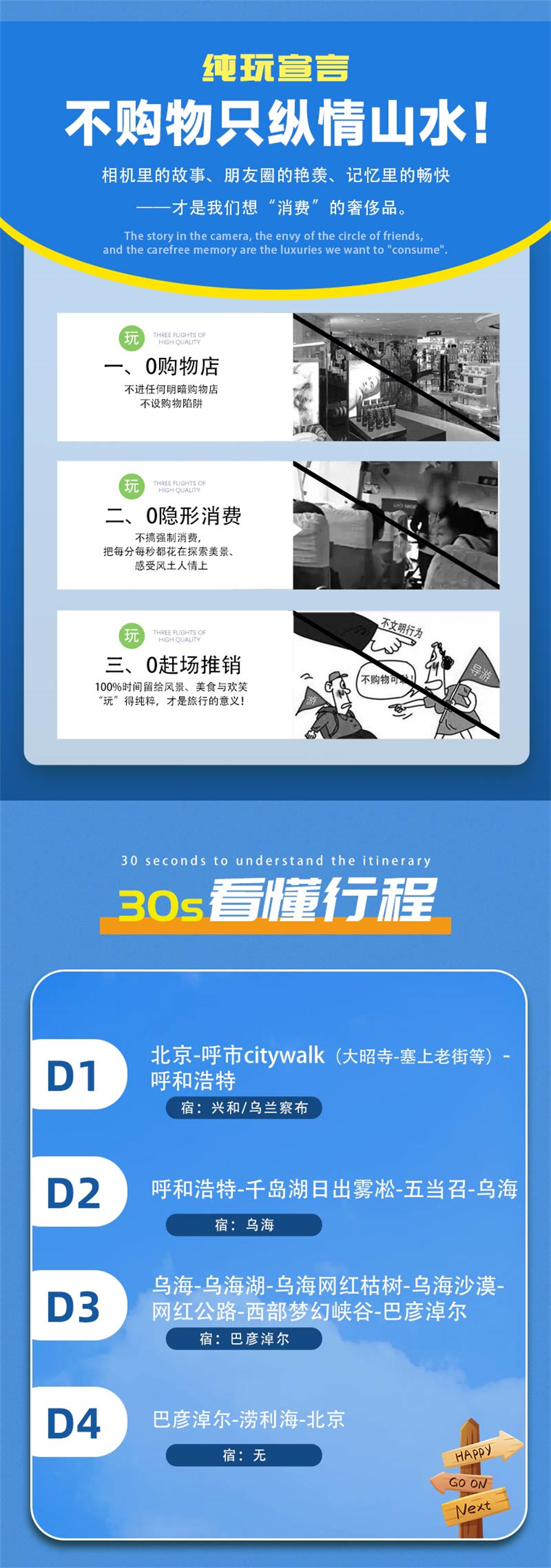 2)门票:西部梦幻峡谷门票60元+摆渡车15元,乌海湖68元(含往返摆渡车+网红枯树门票+网红公路打卡),五当召52元,呼市各景点有免费的有收费根据自身需求自行购买即可;其他景点暂无门票费用,如遇临时收费自理。门票价格供参考,以景区实际政策为准;