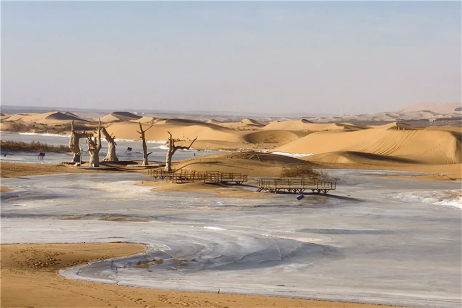 早餐后,集合前往乌海湖游览打卡乌海湖、网红枯树、网红沙漠公路、乌海沙漠!