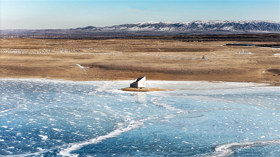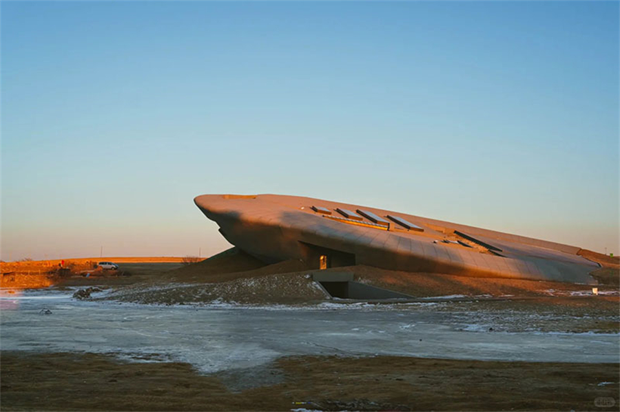 涝利海冬季化身为乌兰察布荒原上的冰封秘境,位于兴和县鄂尔栋镇,这片天然湖泊在严寒中凝结成巨大的天然镜面,四周草场覆盖着枯黄草甸与斑驳积雪。气温可降至零下20摄氏度以下,湖冰厚度可达一米,冰层中镶嵌着冬季限定的气泡冰奇观,冰面裂纹如同大地的脉络。晴日里,阳光在冰面上折射出钻石般的光芒,晨昏时分低斜的阳光将冰面与雪野染成金粉色。湖南岸的“物生其地”民宿建筑群点缀于雪野中,其飞碟造型的观景台和湿地上的教堂为寂静的冬景增添了艺术气息。北岸仍有牛羊骏马在雪地中徜徉,牧民的身影与勒勒车辙在雪原上划出悠长曲线。探访需备足防寒衣物,特别注意防风保暖。