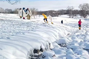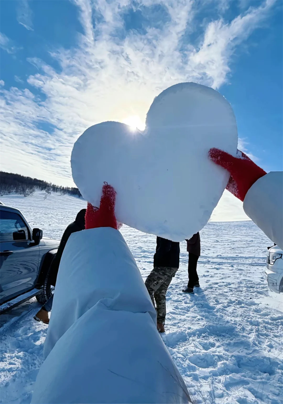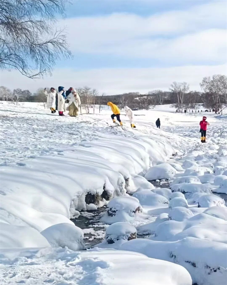 中午|我们到达萨岭河,号称水上高速公路!大家在此进行各项冰河运动,拔河、划圈、冰雪飘逸等,中午我们在此架起灶台,架起铁锅,炖香喷喷的肉,在此寒冷的冰雪草原,吃上热气腾腾的铁锅炖是何等享受。