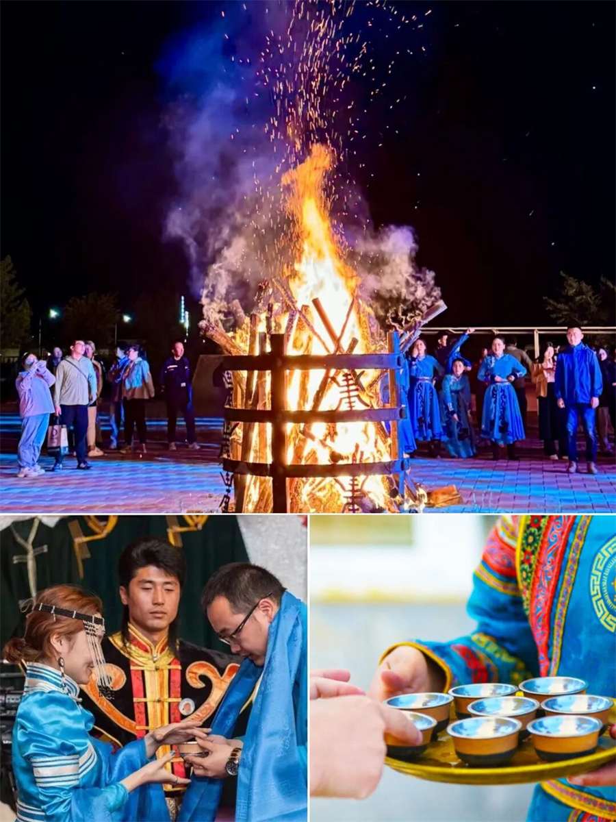 餐后【篝火狂欢晚会】让我们一起点燃圣火,围绕在篝火旁手拉起手一起跟着音乐的节奏动起来,感受蒙古族人民的传统欢庆仪式。星空之夜,篝火歌舞,放烟花,心情要好,生活要嗨,篝火向星辰,所愿皆成真;完事我们返回房间睡觉;