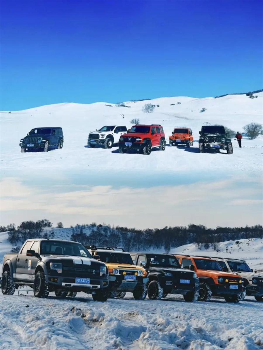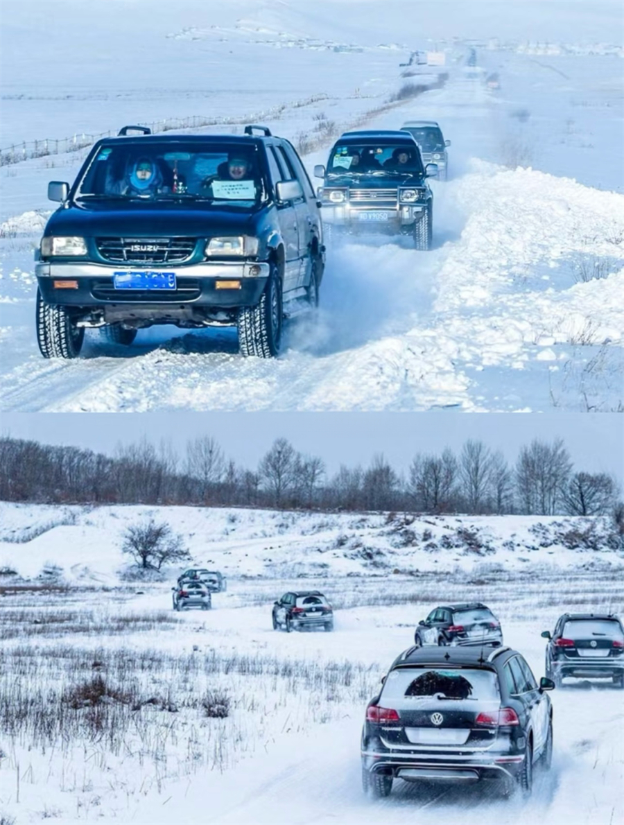 3、越野车穿越途中滑雪圈、冰雪漂移、拔河比赛等;